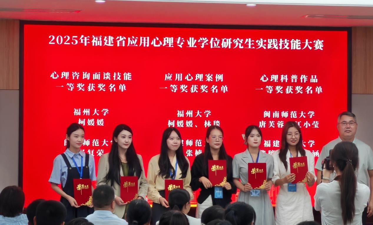 2025年6月29日,福建省应用心理专业学位研究生实践技能大赛决赛在福建师范大学圆满落幕。本次赛事由福建省教育厅主办,福建师范大学承办,福建师范大学研究生院、心理学院和福建省心理学会协办。赛事旨在提升我省应用心理专业学位研究生的实践能力和创新能力,推动心理学理论与实践的结合,展示研究生教育的成果和价值,促进研究生培养经验的广泛交流与分享。