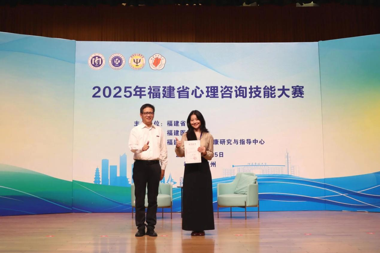 为深入贯彻党的二十大精神,响应国家健全社会心理服务体系,加大心理健康专业人才培养力度的号召,提升福建省高校心理健康相关专业学生的专业素质与心理咨询实践能力,2025年10月25日,由福建省教育厅主办,福建医科大学承办的心理咨询技能大赛在医大会堂成功举办。经过精彩的初赛和复赛选拔,我校本科生选手蔡佳芯,研究生选手付俐俐、刘平安成功入围决赛。
