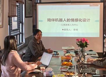 李琦副教授以“陪伴机器人的情感化设计”为主题,从研究背景到实验假设、再到结论进行了系统的分享。首先,她简要介绍了自己的研究背景,向大家分享了她的博士生导师说的一句话“我们作为一名研究生,应该做的是未来的研究”。她指出老龄化发展迅速,中国规模远大于日本,前五年一定要做好准备,老年人孤独感的对社会影响很大,其增加了潜在的健康风险,加重了医疗负担,代际矛盾,导致整个社会的情绪和活力下降,同时指出孤独的老人不喜欢机器人陪伴的原因在于对伴侣机器人不好的使用体验,提出了解决方案“设计能提高用户体验的伴侣机器人”,设计了五个实验,证明通过伴侣机器人的设计可以使老人的欲望得到满足,从而改善情绪。
