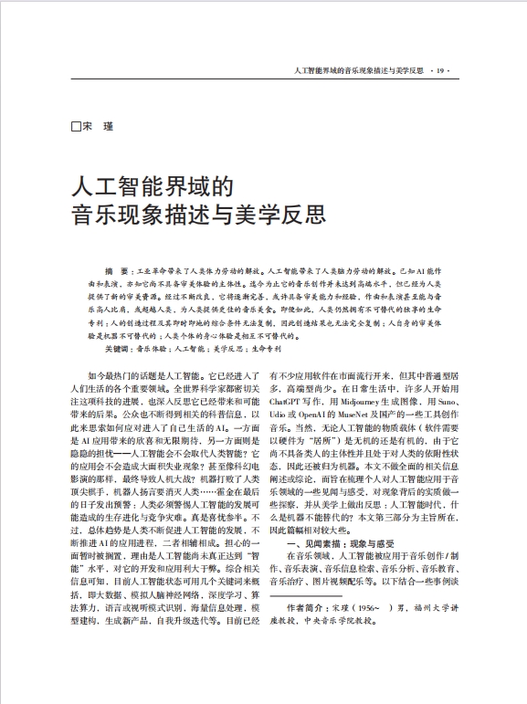 讲座教授宋瑾于2025年在权威期刊《中国音乐学》第一期上发表题为《人工智能界域的音乐现象描述与美学反思》的文章(以草莓视频