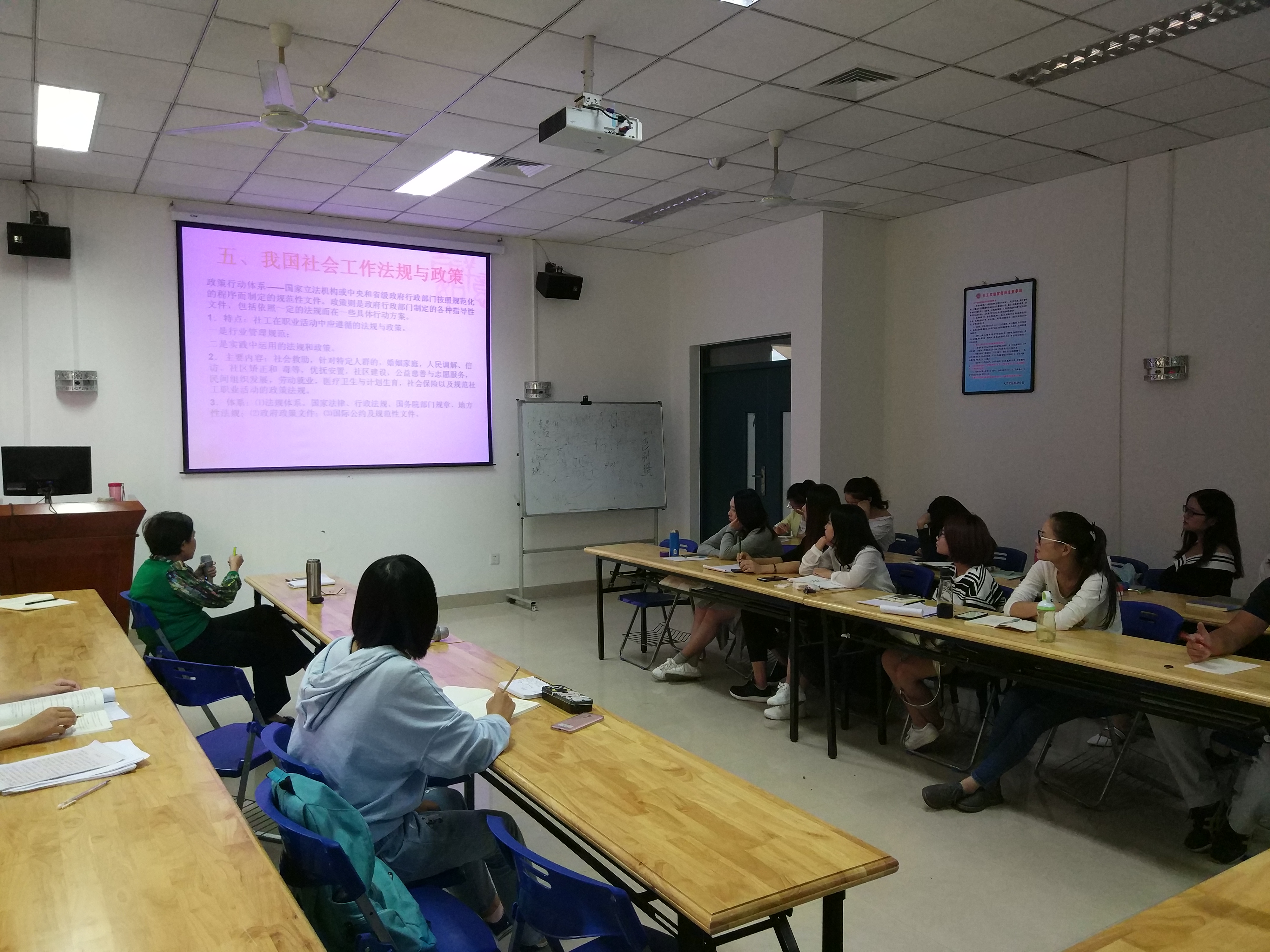 社会学系的17级社会工作研究生系统地介绍了我国社会工作相关政策的发展历程和当前社会工作发展的政策背景. 徐若兰处长在社会工作领域有着十年的工作经验,见证了中国社会工作事业在曲折中发展的历程,并为福建省社会工作的发展做出了重要贡献。徐若兰处长首先从国家层面为我们讲解了社会政策的构成要素和社会政策的过程,使我们了解到我国社会工作专业发展的政策环境。
