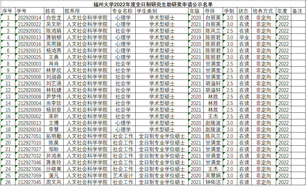 现将2022年度草莓视频 全日制助研金申请名单公示(如下图)。