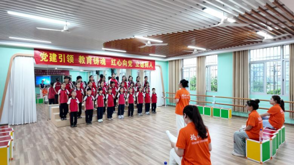 合唱教室中,乘音合唱团的歌声格外嘹亮。在林瑶、邱雨欣等队员的指导下,孩子们对《歌唱祖国》和《红歌唱得满天红》两首经典曲目进行了深度排练。实践队员着重雕琢声部间的和谐与情感表达的层次,从气息控制到歌词咬字逐一精修,激昂的旋律在反复锤炼中愈发饱满。