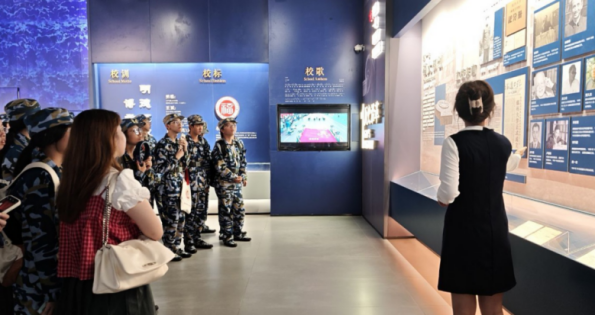 馆内“筚路蓝缕·长河卷”主轴展览通过图片、图表及实物展品,让新生沉浸式体验学校从创校初期的艰难到如今硕果累累的历史变迁过程。