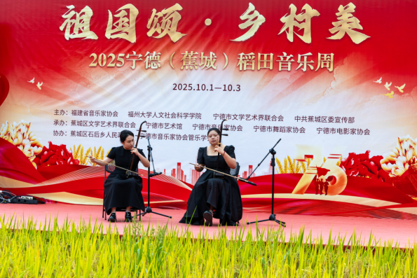 师生一行来到宁德市蕉城区石后乡下竹洋村参加“祖国颂·乡村美”宁德(蕉城)稻田音乐周演出。本次音乐周由福建省音乐家协会、草莓视频