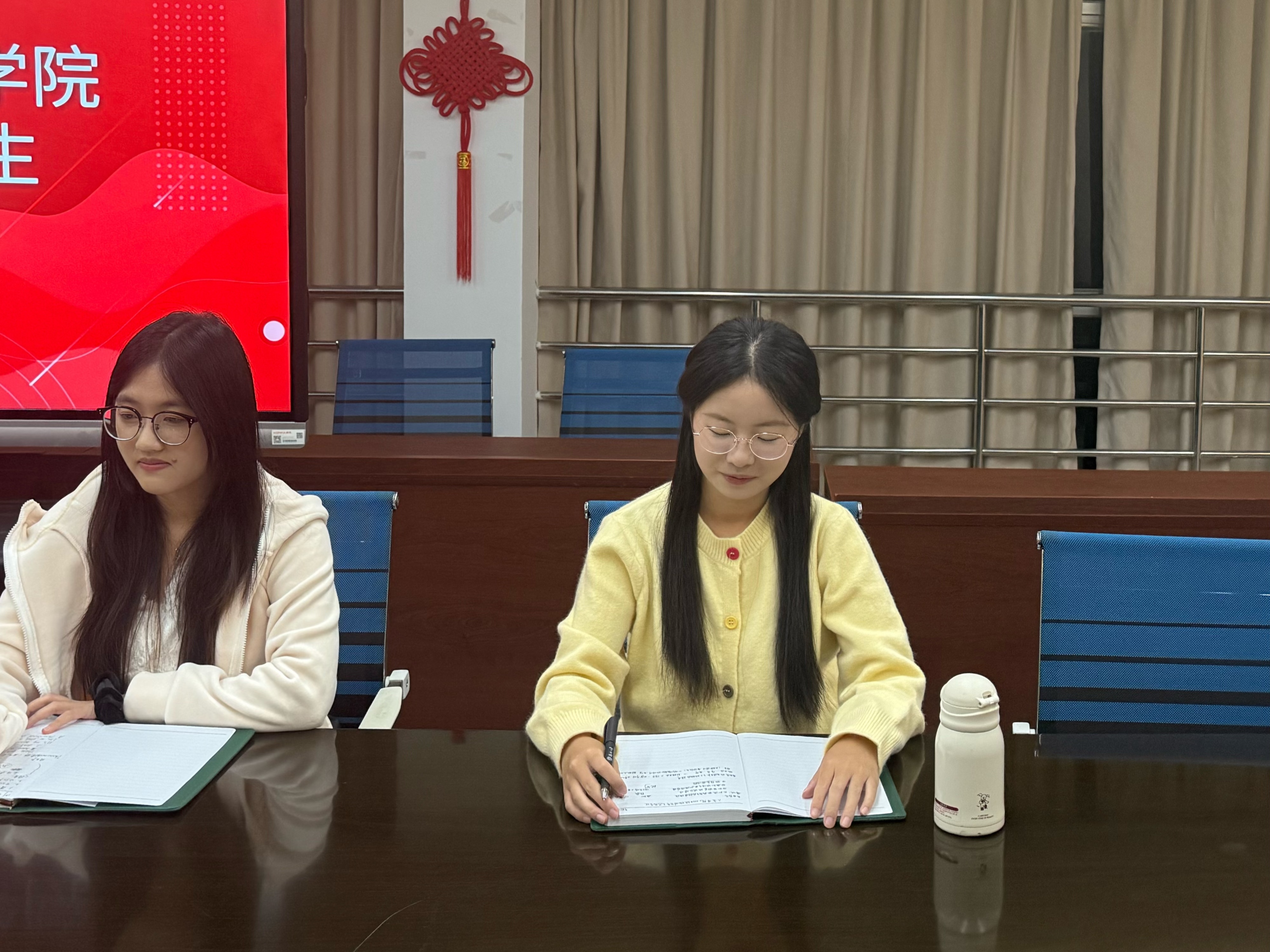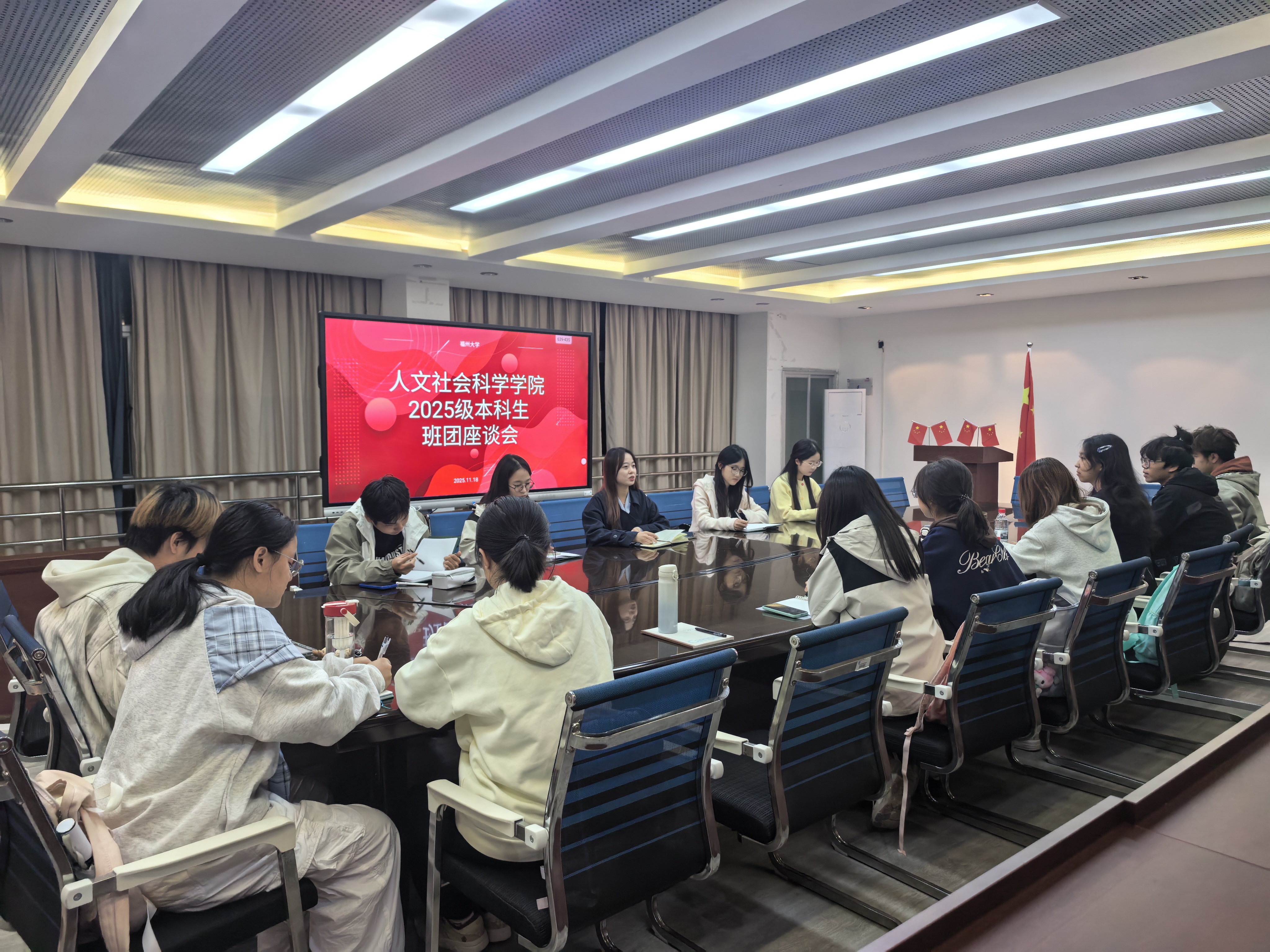 开展2025级本科生班团经验交流分享会。分享会由2025级辅导员谢婉婷老师主持,2024级优秀班长、团支书李诚露、胡希菡、刘鑫、王子尧四位同学作经验分享,2025级全体段长、班长、团支书共同参与交流。
