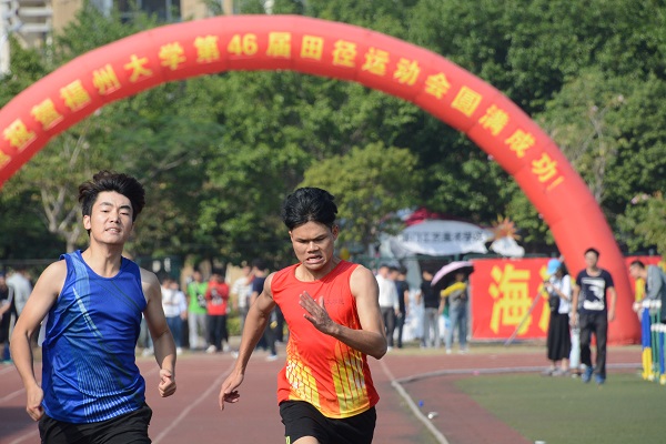 红色的塑胶跑道上,只听“砰”的一声枪响,周忠贤似离弦之箭冲出起点。他奋力摆动双臂,全力迈开双脚,用尽全身力气向终点冲去。赛场上运动员们奋力奔跑,各不相让。加油声与运动激情尽情交织。最后,周忠贤同学以25.9秒的好成绩喜获男学乙200米决赛第七名,为学院赢得荣誉!