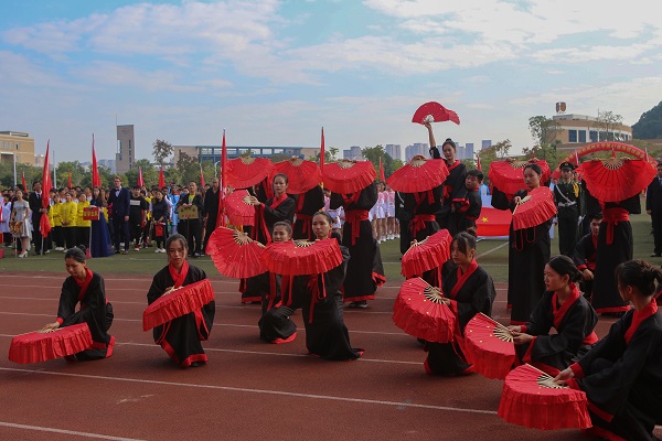 各学院方阵口号响亮,英姿飒爽,在学院领队的带领下展开各具特色的入场队列表演,展示各自学院风采。“卓越人文,精彩绝伦”伴随着锣鼓声与呐喊声,人文学子身着黑色汉服,手持红扇,以饱满的精神、矫健的步伐踏出青春的气息,在草莓视频