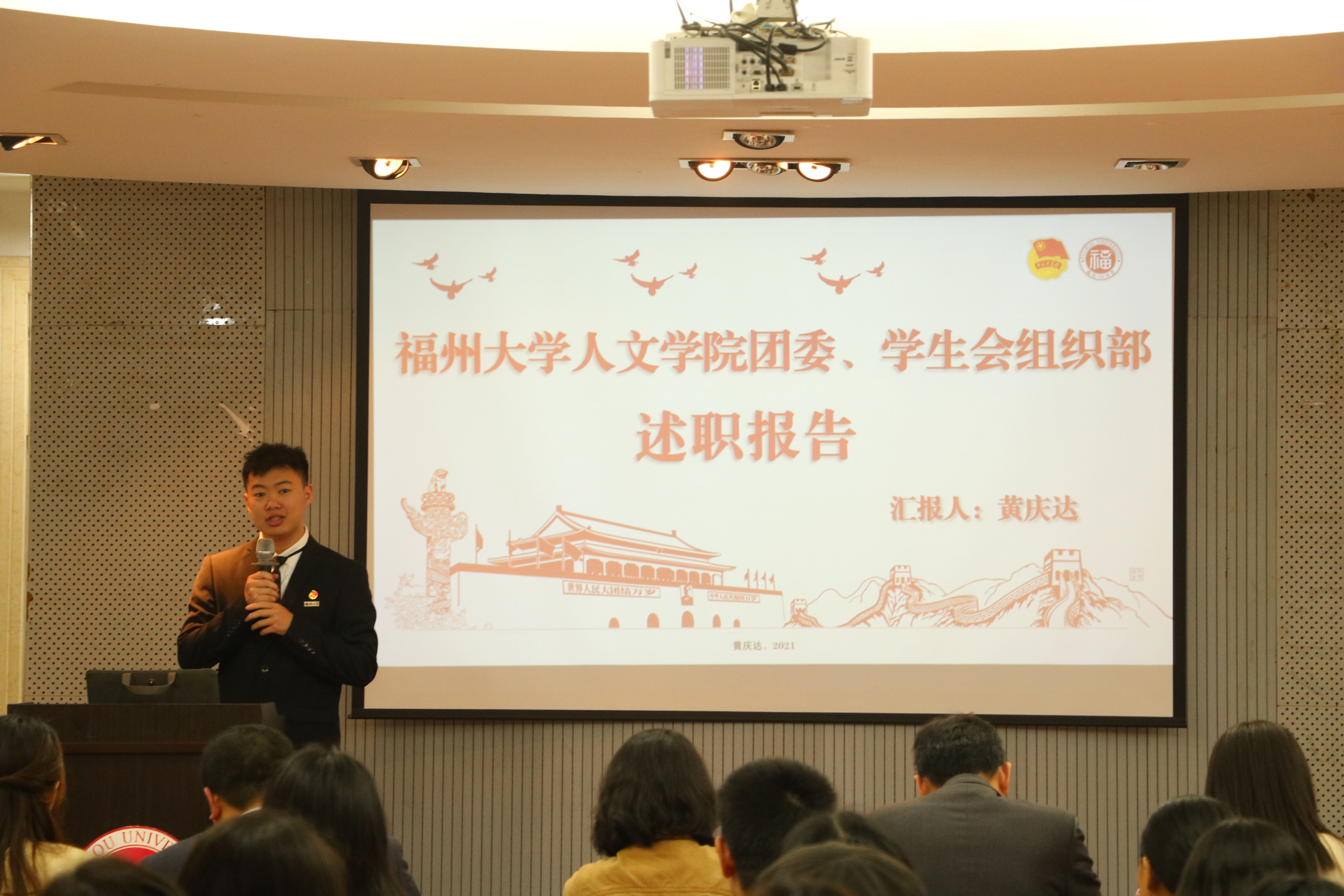 的拼搏奋斗精神,并提到“我是最后一个进行述职的部门负责人,我们十七个部门刚刚所报告的工作,其实都是为人文学生的工作。请大家一起期待,人文体育部的明天,期待人文学子的风采”。此外,还有社团活动部,志愿服务部、网络信息部等部门一一为我们展示了部门的成果和风采。