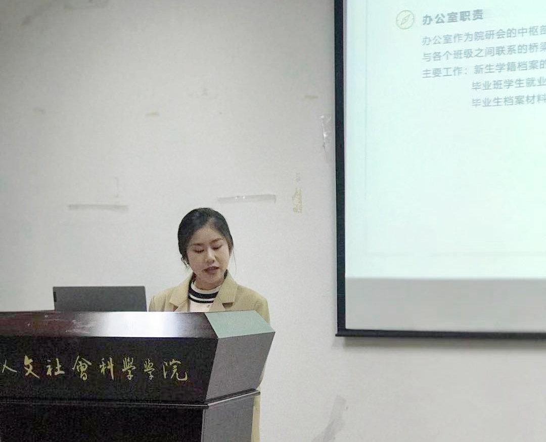 会议伊始,辅导员房菁就换届选举流程作了简单介绍,并对竞选成员给予鼓励。