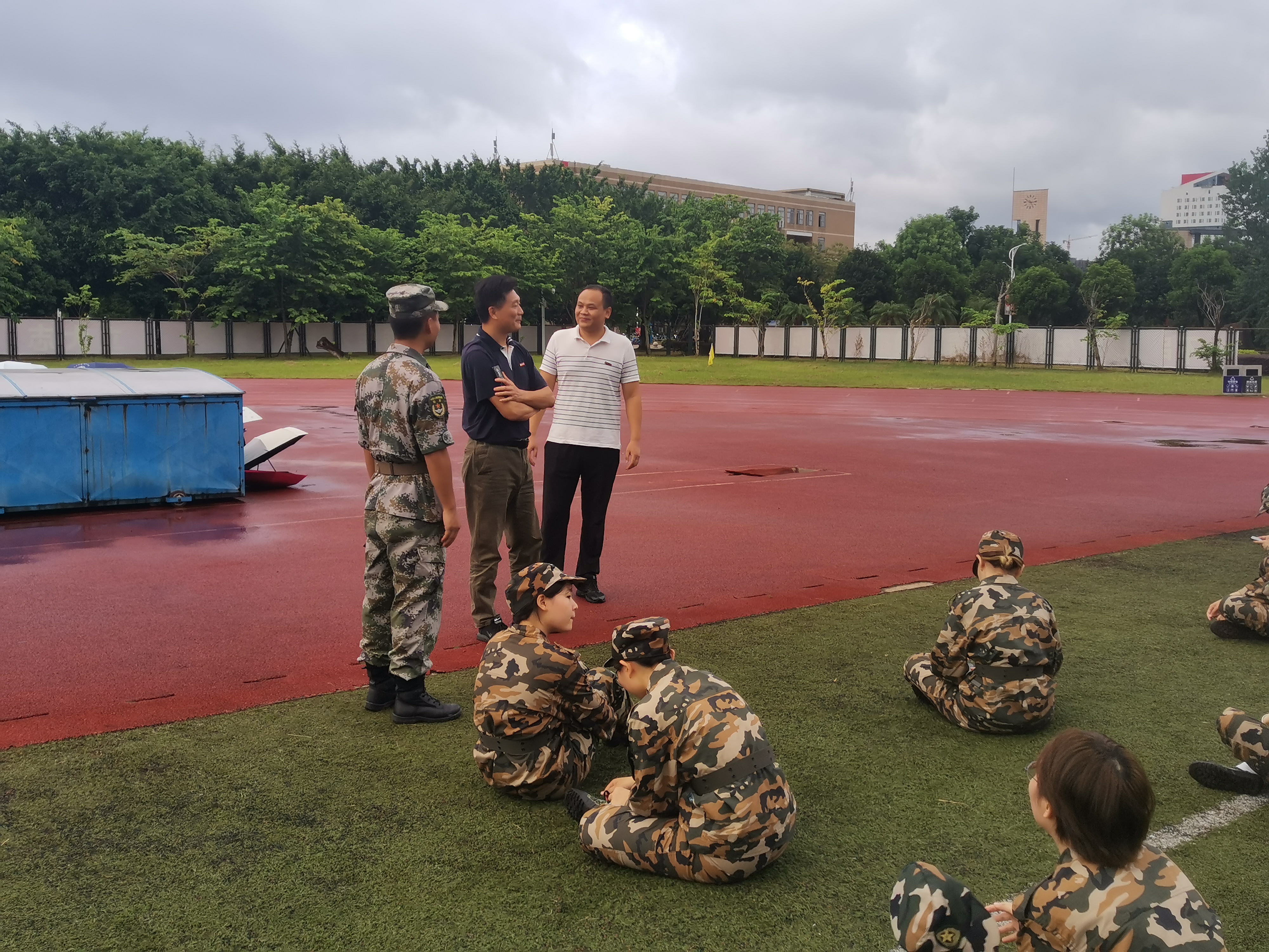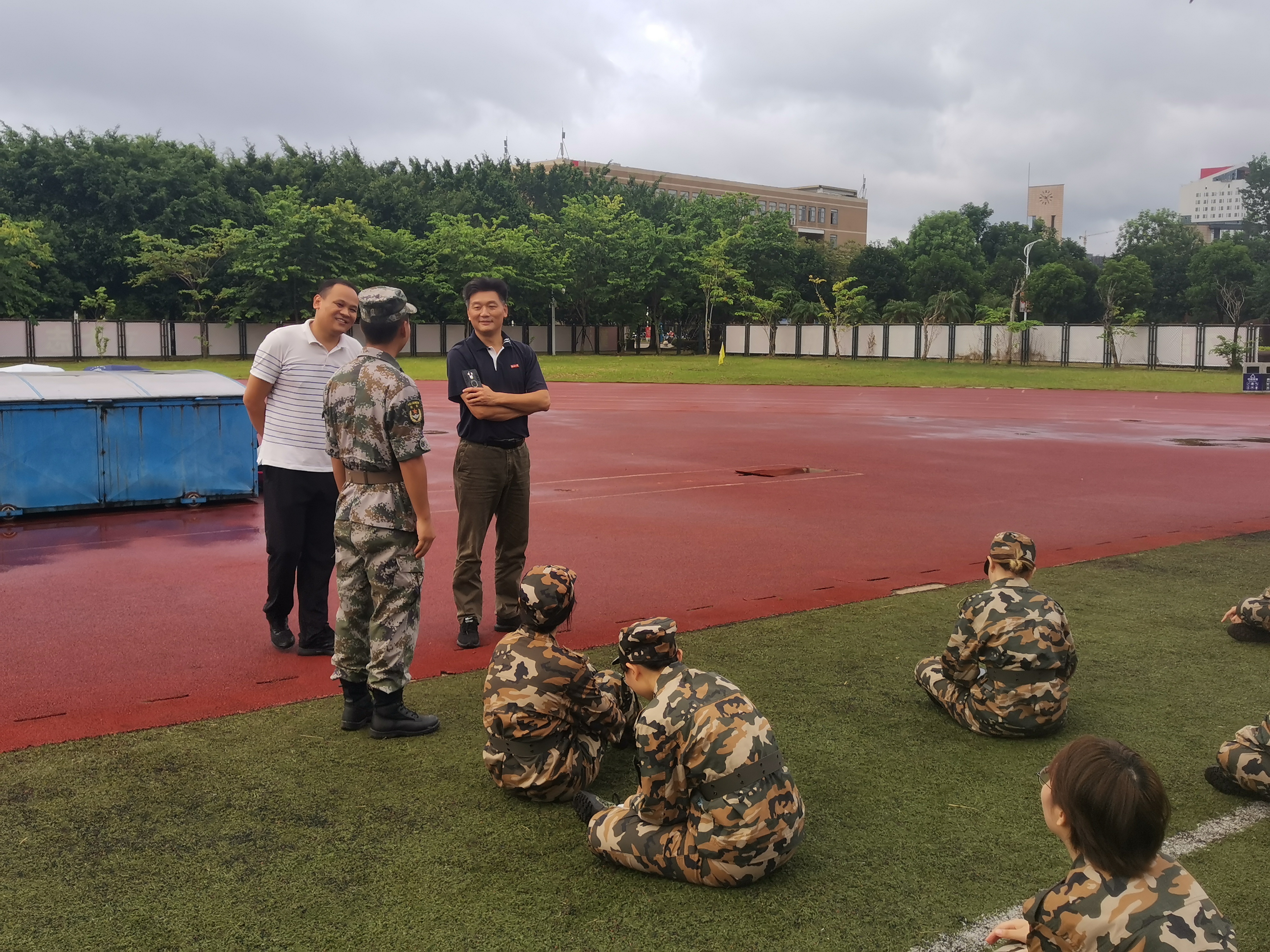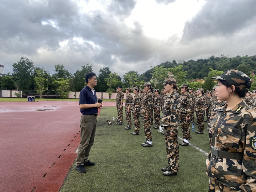 王群书记首先询问了同学们近日军训的情况和身体状况,了解同学们对于大学生军训的认识。近日恰逢雨季,王群书记对军训场地、同学们的着装等问题的进行询问,了解同学们的想法。他提到,军训在强身健体的同时也有助于发扬青年学生的精神面貌,希望同学们珍惜军训的宝贵时间,在军训中学会团结共进,发扬好爱国主义精神,磨砺好自己的意志。最后,王群书记对同学们表示关心和慰问,希望同学们与自己的教官加强沟通,向教官们学习。此外,王群书记就军训情况同新生教官进行交流。同学们表示,军训作为大学生活中不可或缺的一个环节,更应投入训练、发扬青春光彩。