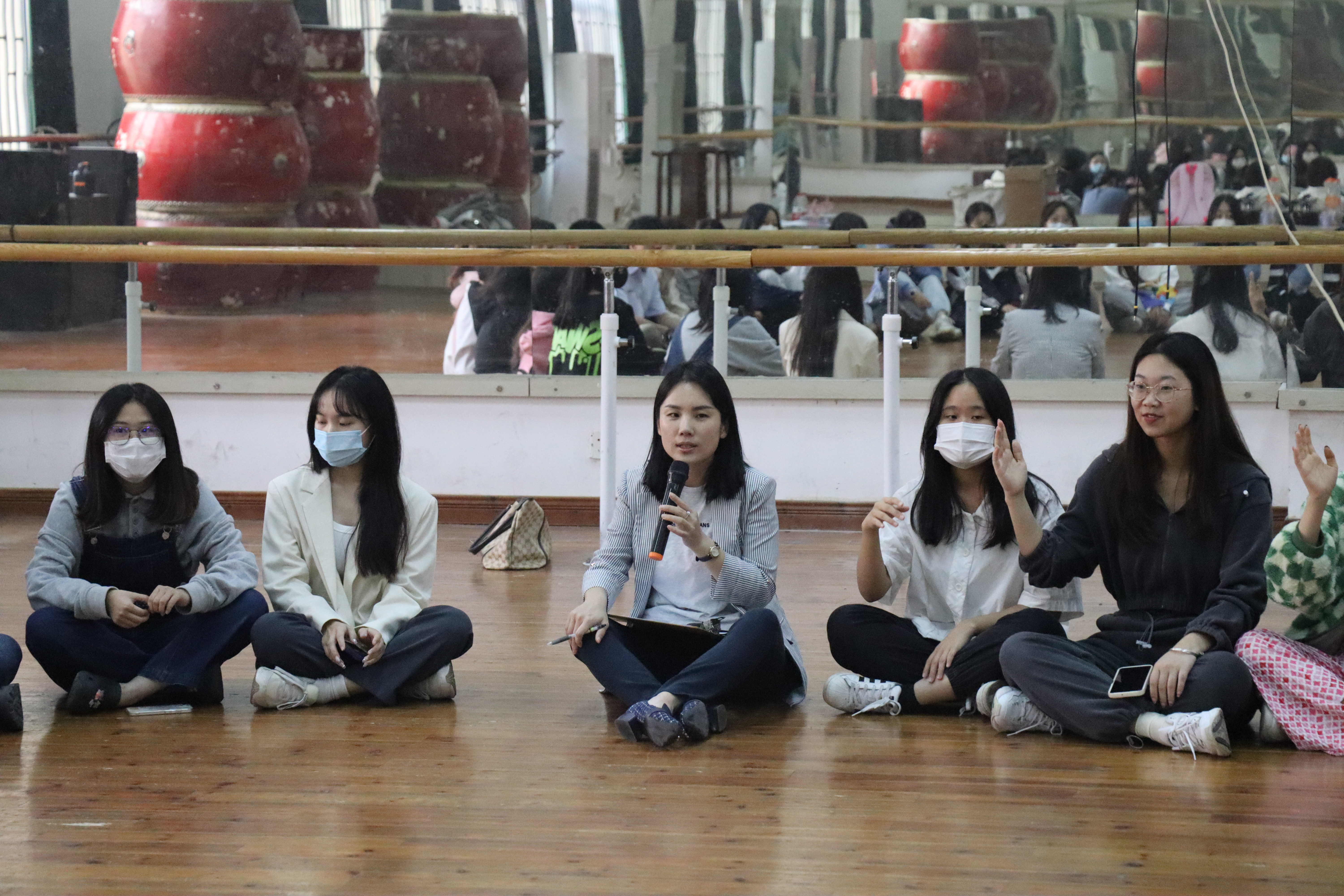 活动伊始,林斐博士引导同学们席地而坐,言笑晏晏间,初步交流了解在场学生干部的工作性质及团队定位。随着自由分组流程的开展,场地内欢声笑语,洋溢的热情推动活动气氛步入高潮。