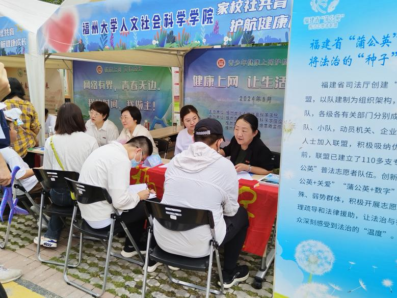 以“青少年健康上网护航行动”为主题,赴福州市鼓楼区树兜社区幸福里,参加由福建省心理学会、鼓楼区教育局、福建省“蒲公英”普法志愿者联盟、福建法治报社等多家单位联合主办的“法润心安 绿网无忧”互动体验区系列活动。