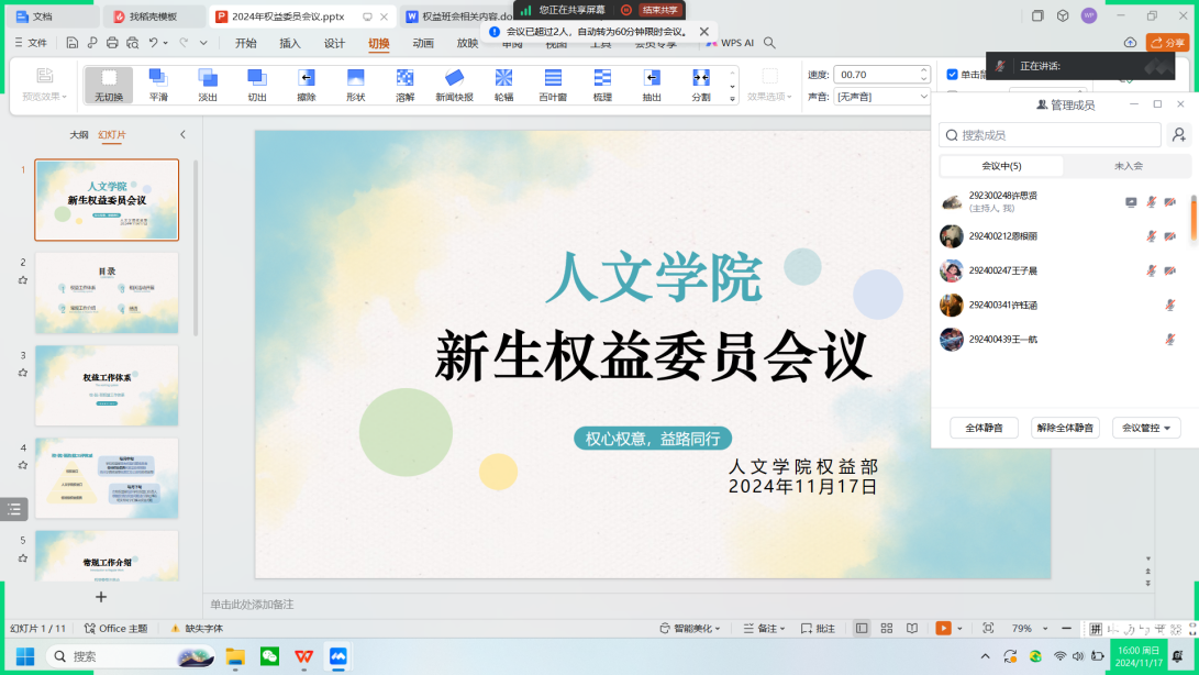还组织召开2024级新生权益委员会议,对2024级新生权益委员进行进一步培训,展示学院权益工作体系,梳理院-班权益问题反馈流程,介绍学院自主开展的服务同学权益维护的“阳光宿舍,益路同行”、权益班会等特色活动具体内容。