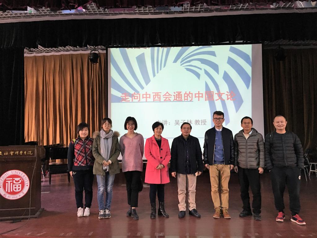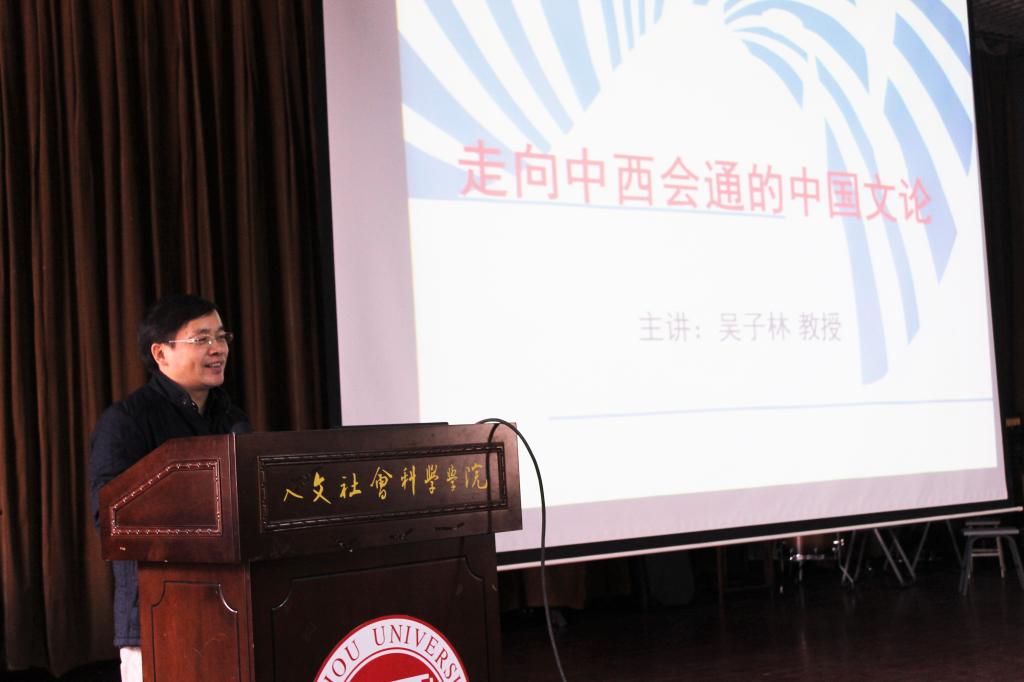 进行了题为“走向中西会通的中国文论”的讲座。吴子林先生是中国社会科学院文学研究所研究员,《文学评论》编审,中国社会科学院研究生院教授、研究生导师。曾先后师从著名比较文学家李万钧先生和著名文学理论家童庆炳先生。迄今发表学术论文120多篇,出版专著近十部,编著系列丛书数部,合计不下500万字,成就卓著。
