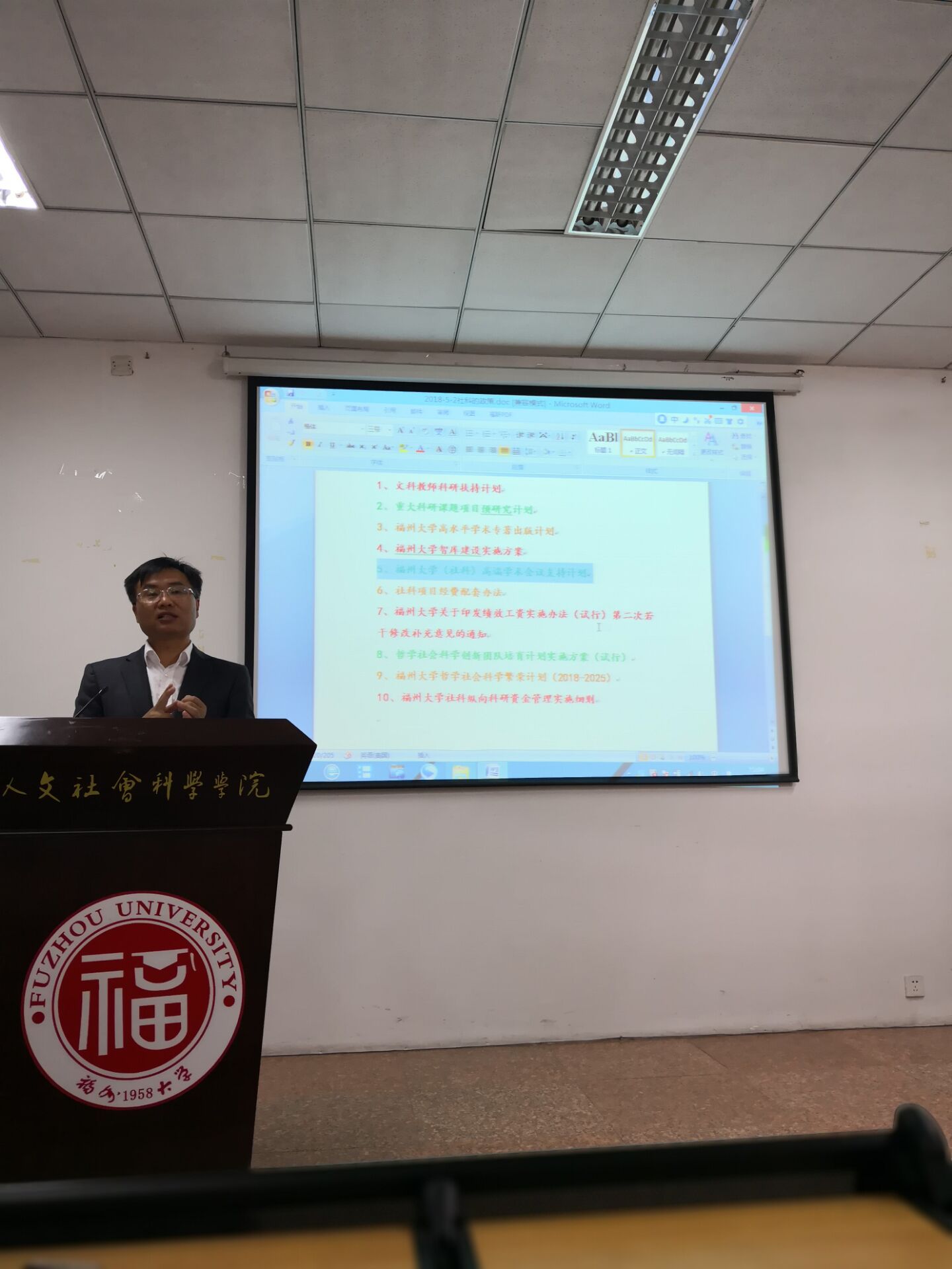 首先,大会邀请社科处高明处长莅会做有关科研工作政策解读和业务指导。高明处长强调培养教师形成良好科研品质的重要性,并就学校的十项科研政策、社科类科研工作考核标准做了详细的解读。