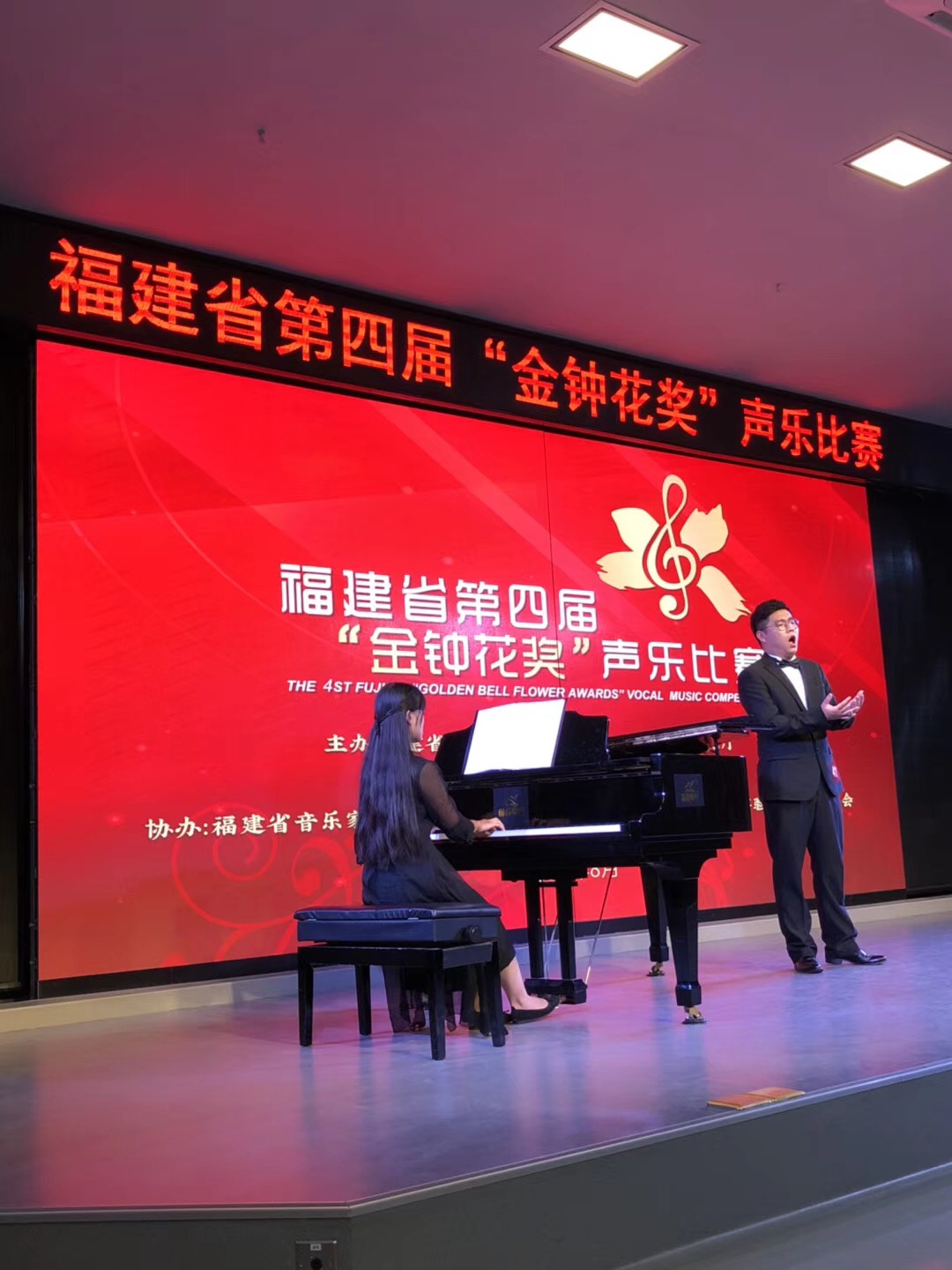 音乐学系选送的2014级学生梁爽(指导老师:卜瑾)在2018年8月19日至8月24日由福建省文学艺术界联合会、福建省文化厅主办,福建省音协承办的福建省第四届“金钟花奖”专业声乐比赛中,以优美的歌声与细腻的情感演唱中国作品《黄河渔娘》,获9.627分,取得民族组第五名的佳绩,成功摘取民族组银奖。这是音乐学系建系以来、也是我校第一位学生在这项省级权威专业比赛中获此殊荣。