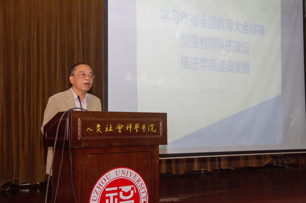 在人文艺术实践基地举行了“学习贯彻全国教育大会精神,加强教师队伍建设,推进学院建设发展”的专题学习会,院党委书记林秋生为全院教职工作了主题报告。