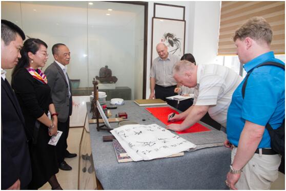 的传统文化馆,并表现出浓厚的兴趣。