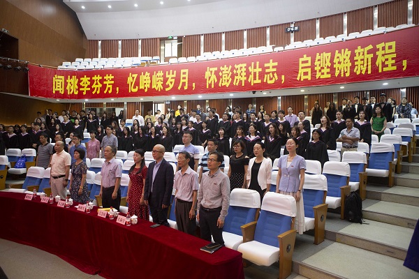 2019届毕业典礼于图书馆博学厅顺利举行。院党委林秋生书记、院党委郑志刚副书记、副院长吴慧娟教授、副院长梁桂芳副教授、院工会主席魏德毓副教授、院长助理甘满堂教授作为嘉宾出席此次典礼。此次典礼由郑志刚副书记主持。