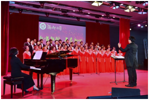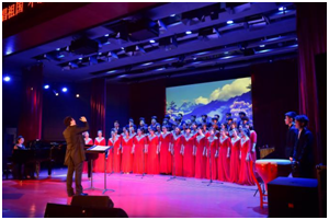 黄青老师指挥音乐学系合唱团登台表演,其中三首中国现代无伴奏合唱作品融合了我国各地民族风格与当前国际合唱新理念,难度较大,合唱团较好的完成了作品的演绎,另外三首为国内外当代优秀的有伴奏合唱作品,演出中加入打击乐、管乐等乐器给表演舞台增加了丰富的音响色彩,结尾的合唱作品《不忘初心》由两位指导老师与合唱团联袂出演,充分表达了音乐学系师生对祖国的热爱,对艺术的不断追求,在和谐、激昂的合唱声音中全场气氛达到高潮。