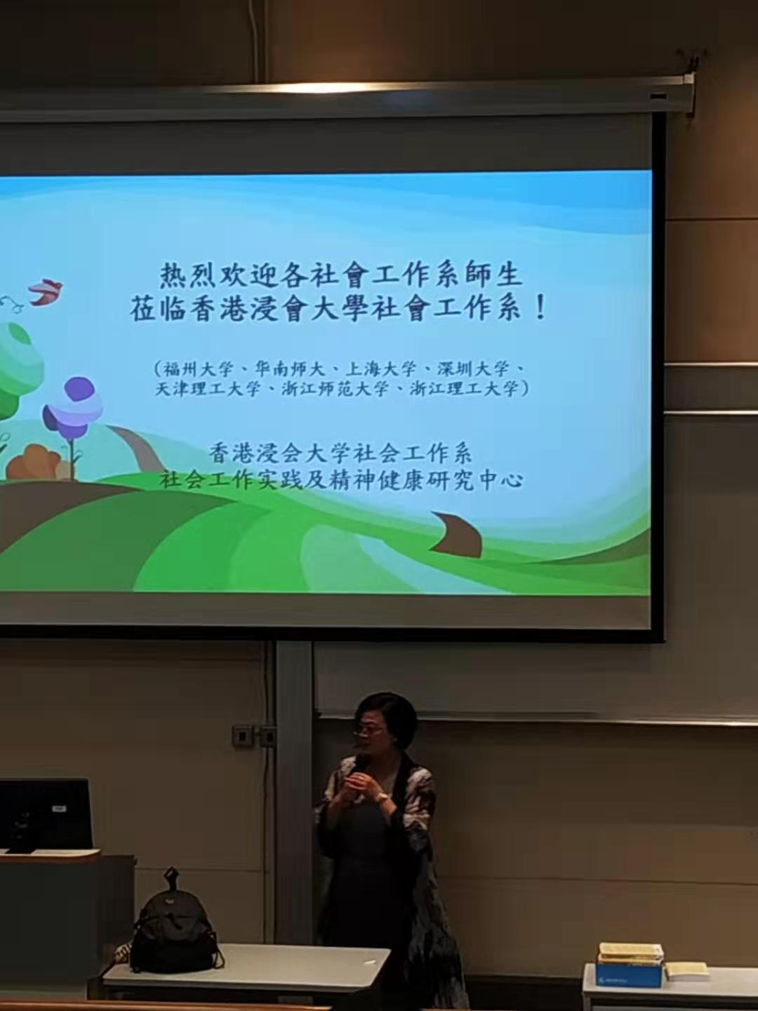 开始进行由香港浸会大学社会工作系社会工作实践及精神健康研究中心主办的暑期学术交流活动,苏细清博士主持整个交流活动,首先,由香港浸会大学社会工作系系主任吴日岚教授致欢迎词,吴日岚教授对我们的到来表达了热烈欢迎。