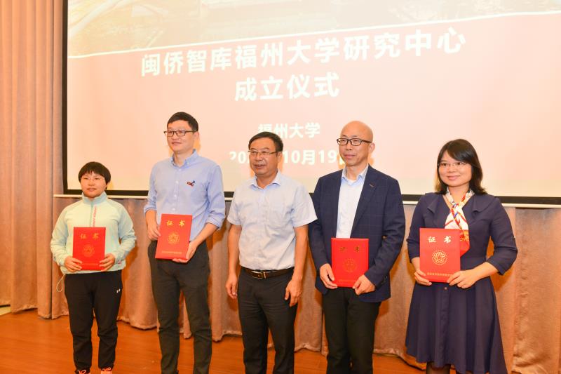 的闽侨智库专家成员:甘满堂教授、林胜教授、陈凤兰副教授和王圣莉博士颁发闽