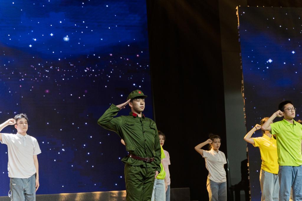 晚会还邀请了劳动奖章获得者、非遗传承人高少萍老师为大家带来剪纸表演唱《剪纸谣》,高老师用短短一首歌的时间剪出一幅精美的剪纸作品——《祝福祖国》,飞快转动的剪刀,伴随着悠扬的乐曲,再次展开时,“祝福祖国”四个字便展现出来了,精美的图案、美好的寓意,在场的观众无不为之喝彩。随后,《敦煌新语》响起,民乐团的同学们用悠扬的曲调,再谱写美好图景。青春歌会的最佳人气作品《灯火里的中国》再上舞台,在《领航新时代》的歌声中,本次文艺晚会接近尾声。