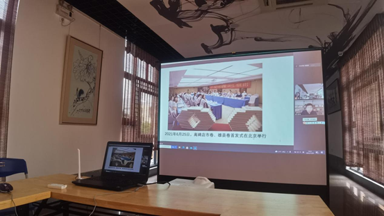 荣老师详细的介绍了河北高碑店和雄安新区的传统音乐文化研究成果,讲述了自2015年至今,召集京津冀学者普查团队,团队以京津冀高校师生为主体并联动海内外学者组成,为地方传统音乐文化整理体提供志愿服务,对京津冀地区音乐类“非遗”以县域为单位开展田野考察的成果汇编,荣老师用照片、视频、图书、数据等一系列丰富素材讲述该团队近些年对于传统音乐文化的探索和研究进展情况,提出面对新现状,新材料、新方法的使用,如乐谱、账本、直播等,最后对河北大学齐易教授等甘于奉献的音乐田野工作者表示致敬。讲座结束后,荣老师结合院长及同学们的提问,就采风过程中的技术运用问题;本土学者与当地文化保护的关系;新发展现状下音乐学的研究方法。荣老师的讲座内容生动,资料详尽,为音乐系师生在进行音乐田野调查、发挥在本土文化建设中作用等方面提供了路径探索,带来了诸多有益的启发。