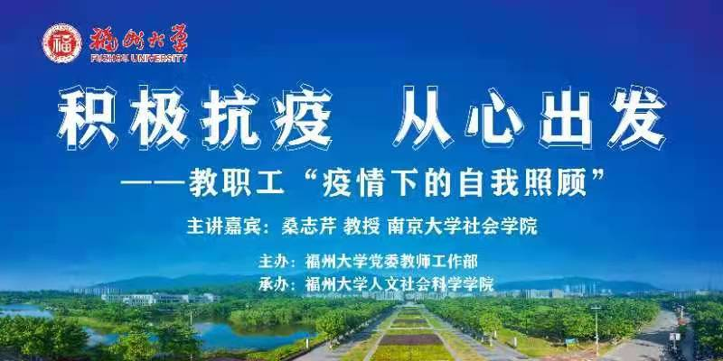 承办的《疫情下的自我照顾》心理健康主题辅导讲座,通过腾讯会议如期举行,本次主题讲座邀请到南京大学社会学院桑志芹教授担任主讲嘉宾,讲座由校党委教师工作部刘旺副部长主持,来自机关党委党员突击队和各学院教职工参加了主题讲座。