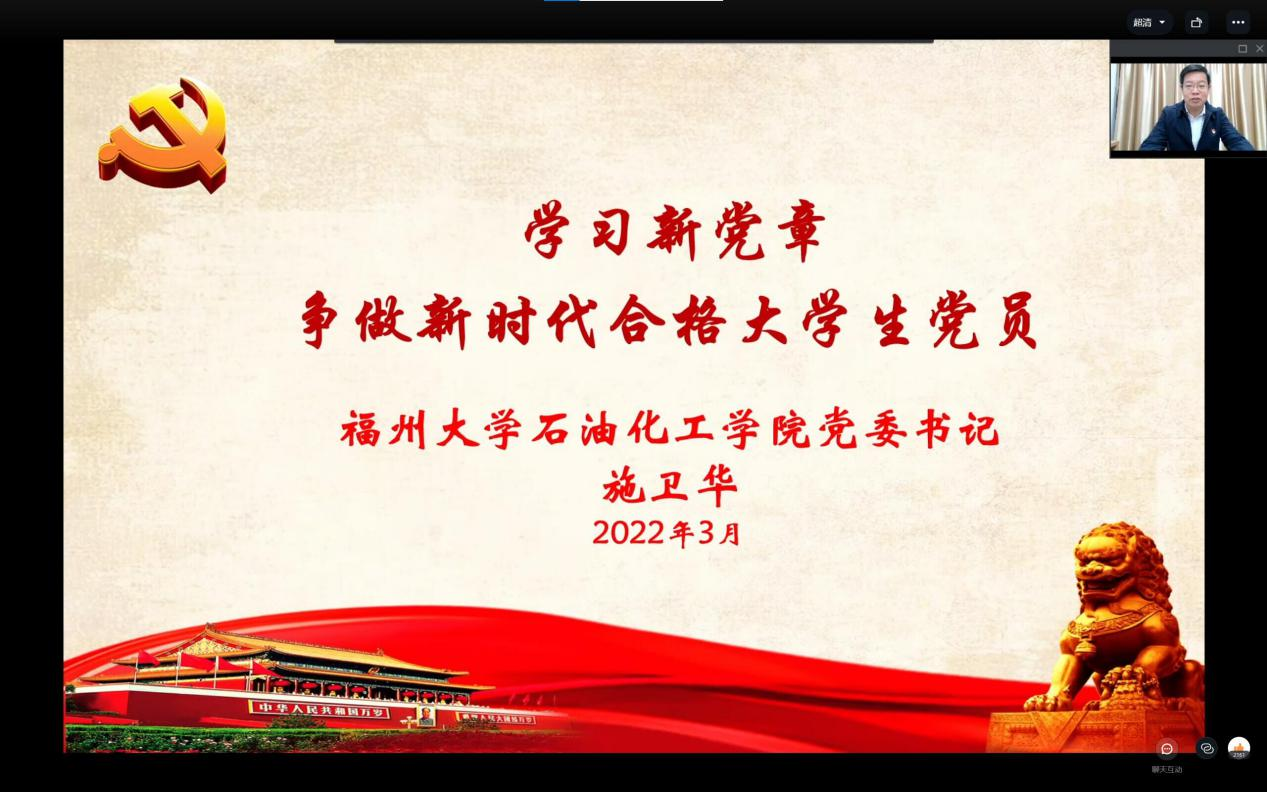 本次讲座从“《中国共产党党章》与党员行为规范”、“尊崇《党章》遵守党员行为规范”、“如何成为新时代合格大学生党员”三个方面展开。