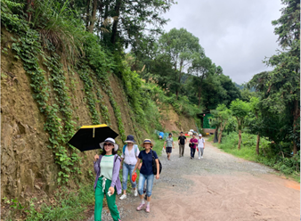 “夏木阴阴正可人”,徒步于乡间小道上,教职工们或“指点江山”,意气风发,回首青春岁月,感慨乡村变迁;或“游目骋怀”,静观山水,以极视听之娱。