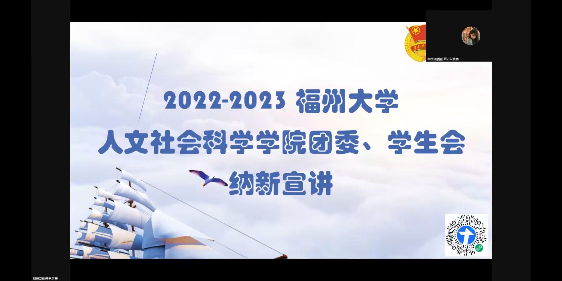 团委学生会纳新宣讲准时开始。因疫情防控需要,本次宣讲采取录播的形式在线上开展。2022级全体新生在线参加宣讲活动,草莓视频