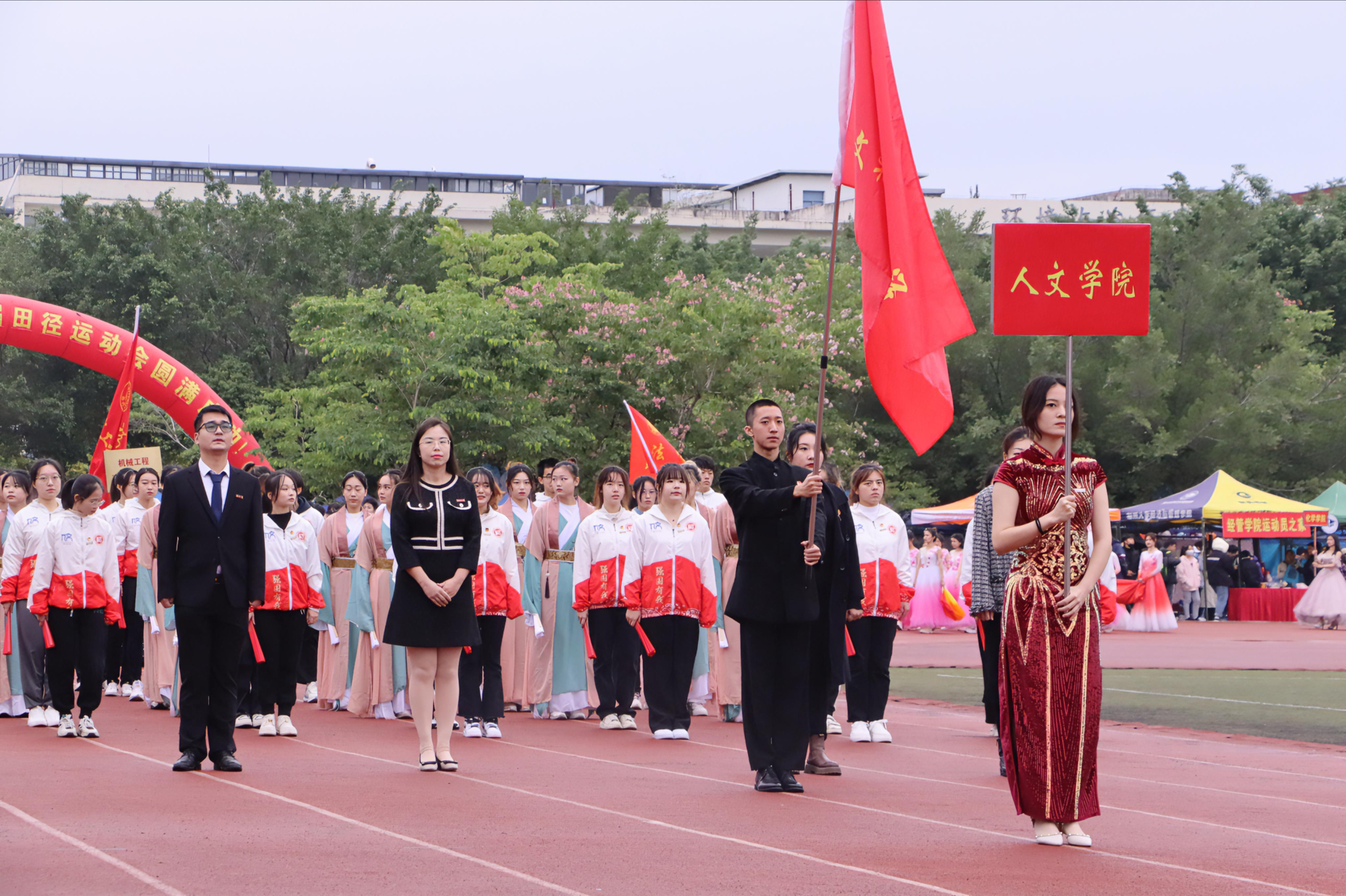 的方阵精彩亮相。本次方阵由学院社会学系刘伟博士、辅导员房菁老师、辅导员李益僮老师、兼职辅导员李妍娇老师领队。方阵由领队、运动员代表与舞蹈队组成。