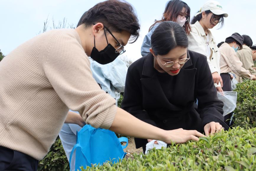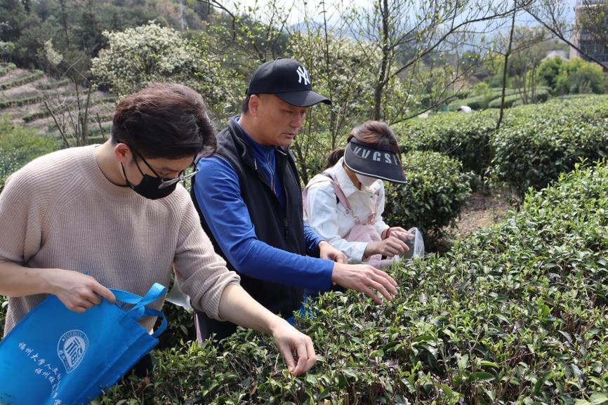 春风和煦,同学们在茶园中躬身采摘的同时,向王群书记提出自己关于茶文化的疑问。在书记生动的讲解中,同学们都对茶有了更深层次的了解和体悟。
