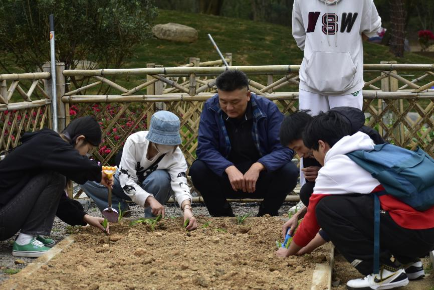 上午8点半,春回大地,万物复苏。活动现场,王群书记为师生介绍了茶树的种植方法和注意事项,并作了现场示范和指导。参与活动的师生们依次领取小苗和劳动工具,一起挥锄铲土、扶苗培土、拎桶浇水。清晨的阳光映衬着师生热火朝天的身影,成为校园里一道亮丽的风景。