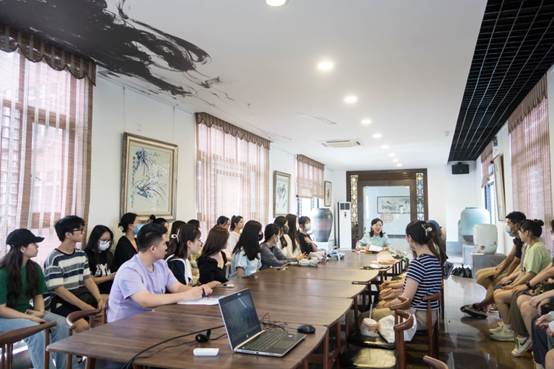 在学院传统文化馆召开主题教育专题调研座谈会,研究生艺术党支部、2020级汉语言文学班党支部、本科生第一党支部的全体党员参与此次调研座谈会,院长吴慧娟主持会议。