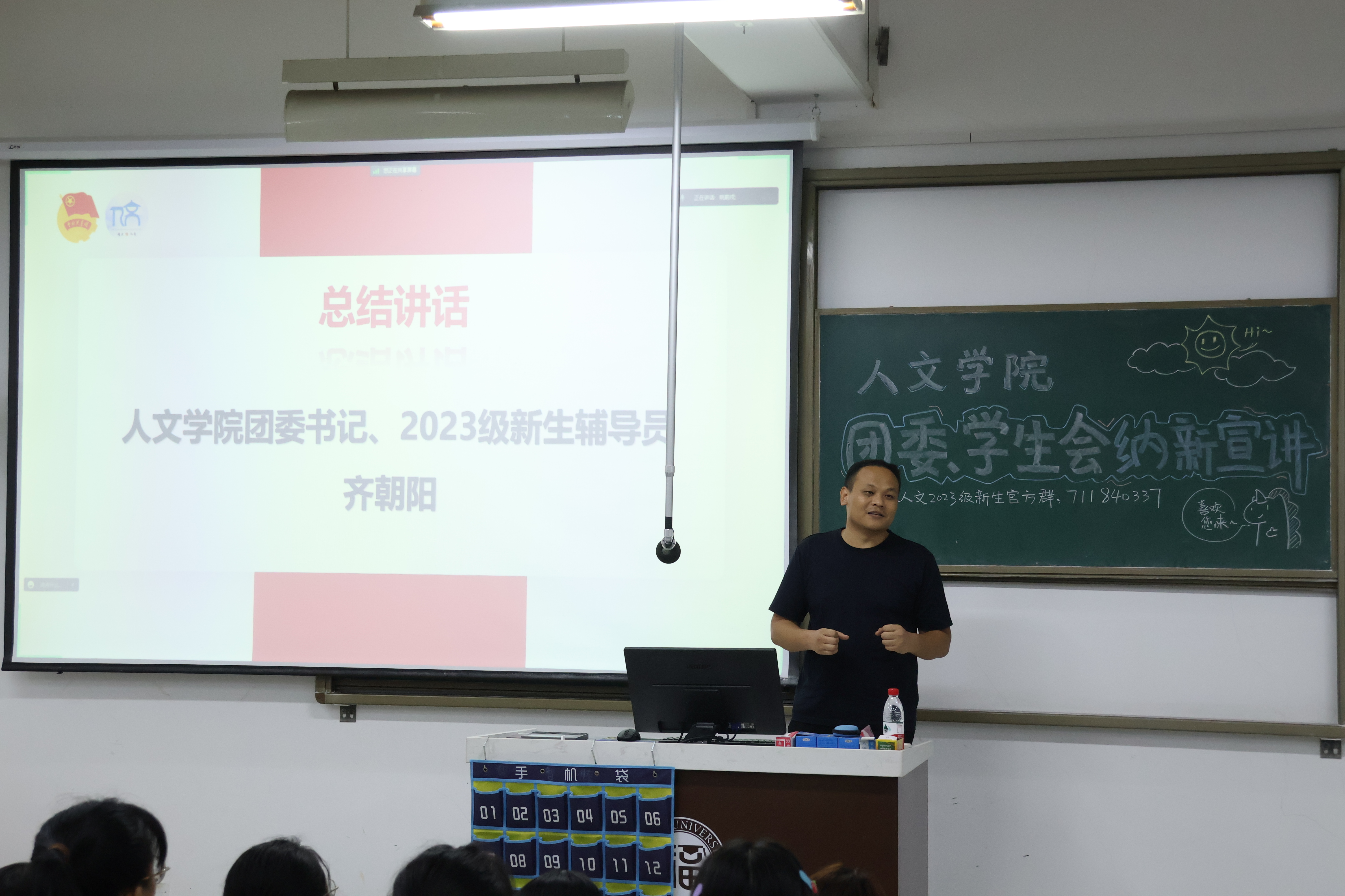此外,新生军训即将开始,齐朝阳书记为2023级新生做军训动员。齐朝阳书记强调内务工作重要性,叮嘱同学们务必按时用餐、依规着装,期待同学们能够在军训中展现出人文风采。