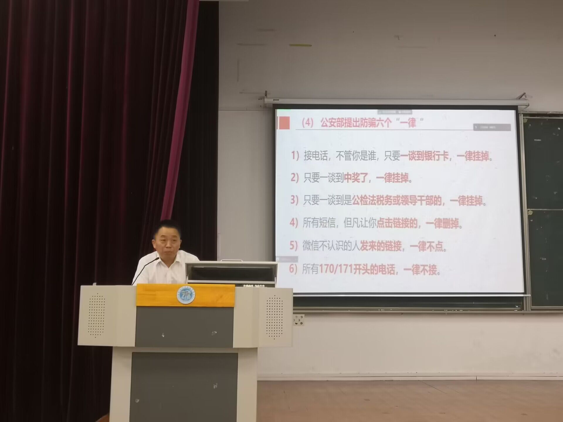 2023级新生安全教育讲座以线上线下相结合的形式在旗山和铜盘校区同时开展,校保卫部治安科叶志廷老师为草莓视频