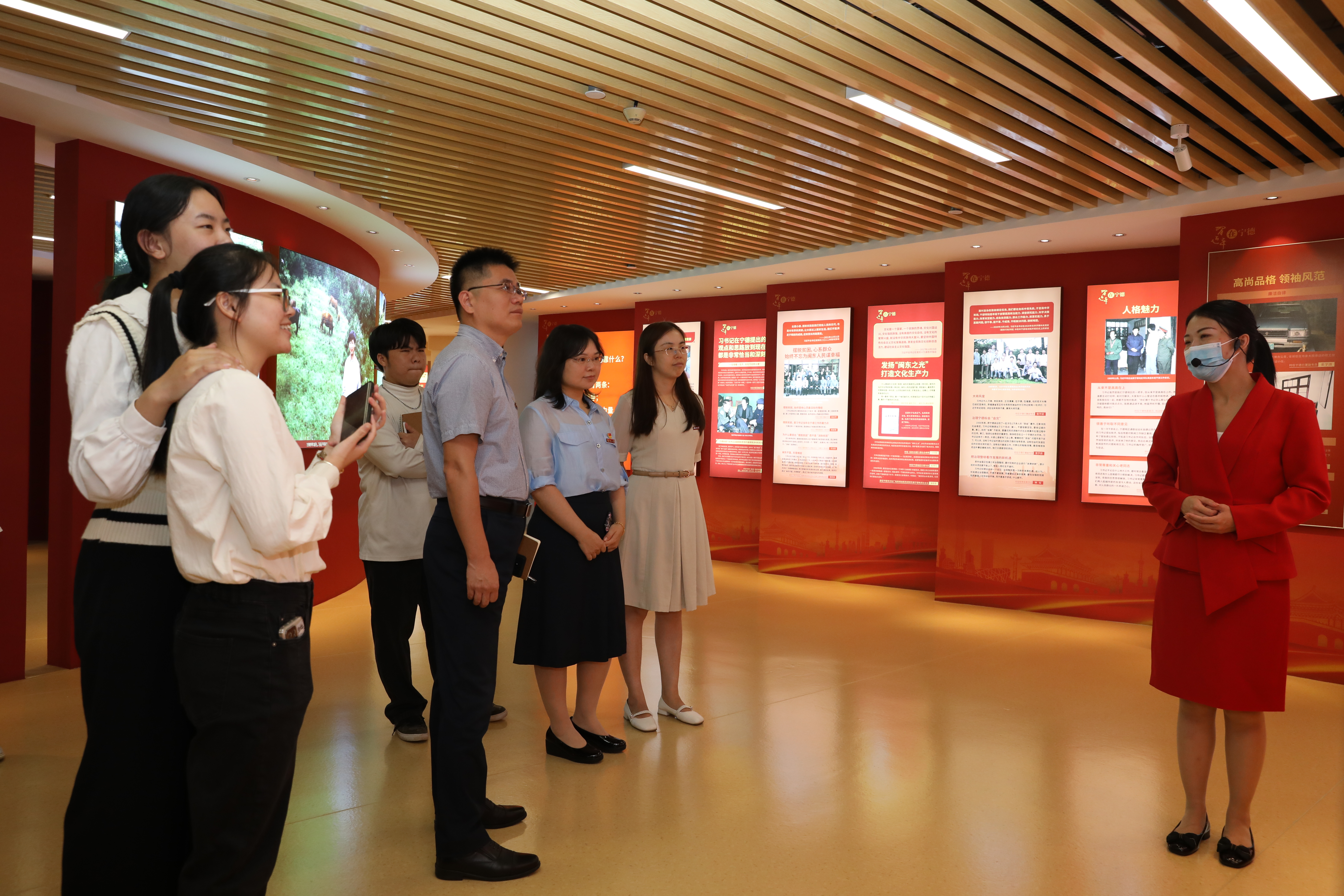 本次活动以主题参观、学习研讨、座谈交流为主要形式,为学生上了一堂生动的思政课和职业规划课。首先,学院师生一行在中信银行福州分行的负责人的带领下参观了银行内部“追循领袖足迹,聆听时代声音”——学懂弄通做实习近平新时代中国特色社会主义思想教育基地,并在展厅中观看习近平新时代中国特色社会主义思想教育宣传片,深入学习了习近平总书记在福建工作期间的重要论述与实践事迹,重点解读了习近平新时代中国特色社会主义思想在福建的孕育与实践、习近平新时代中国特色社会主义思想的主要内涵以及中国特色社会主义事业的伟大实践等关键内容,充分激发了学生们的思考和讨论热情,引发了热烈反响。