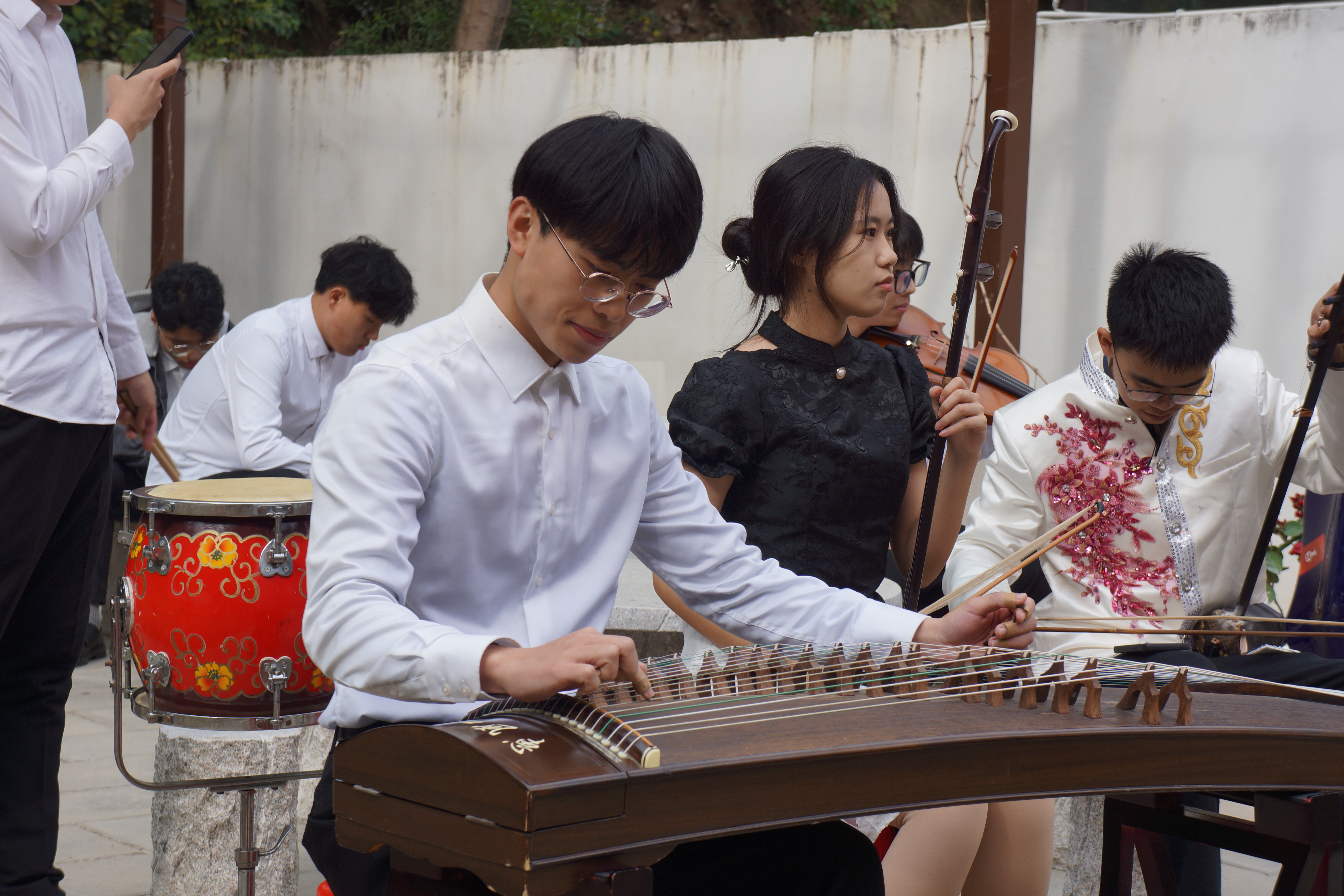音乐学系的同学们演奏歌曲,用音乐快闪为本次活动拉开序幕。《青花瓷》《想见你》《相亲相爱》《美丽中国》……精彩表演赢得阵阵掌声,基地现场热闹非凡。