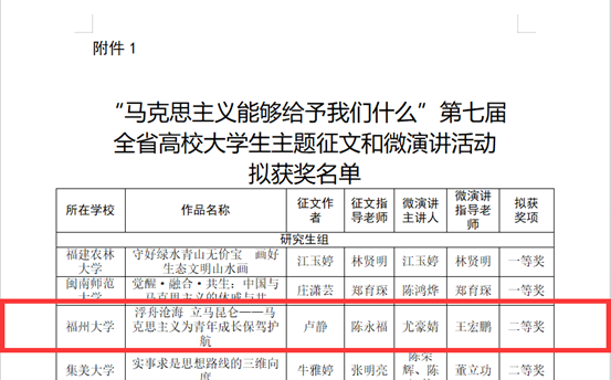 近日,“马克思主义能够给予我们什么”第七届全省高校大学生主题征文和微演讲活动拟获奖名单公布,草莓视频