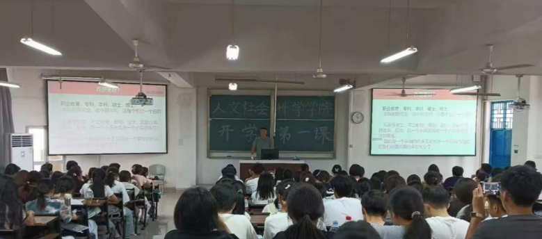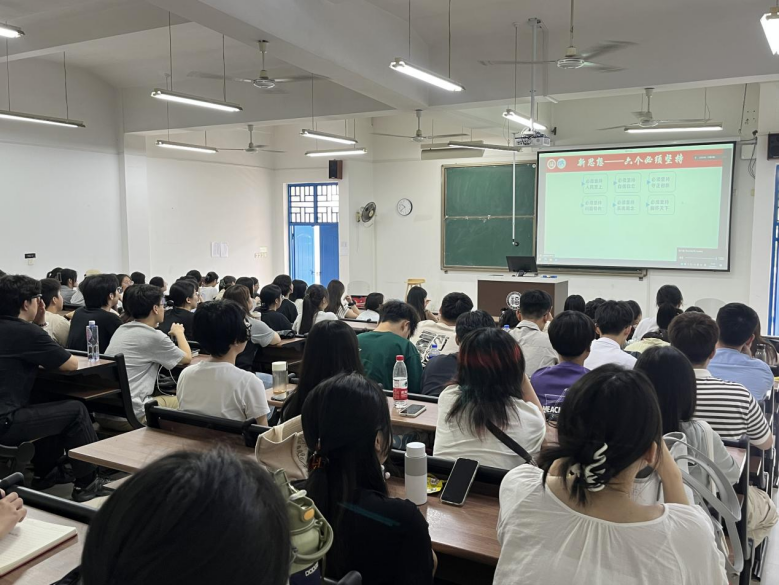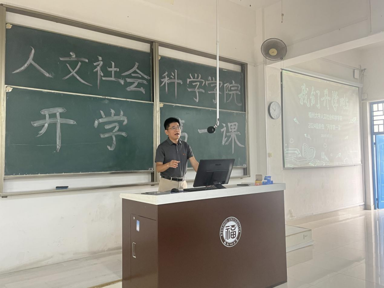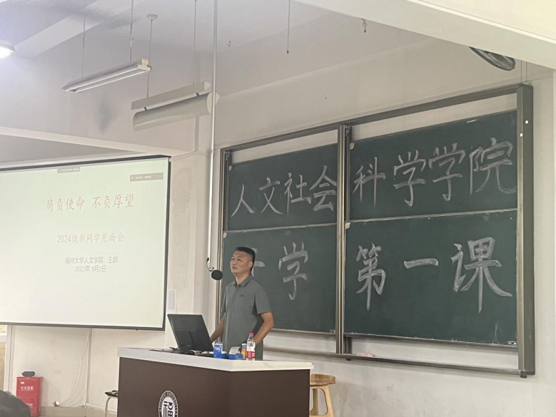 党委书记王群为2024级本科生、研究生开展“开学第一课”新生入学教育。2024级本科新生在铜盘校区B210教室线下参加,旗山校区2024级音乐学新生及2024级研究生新生线上参加,学院党委副书记陈永福主持本次活动。