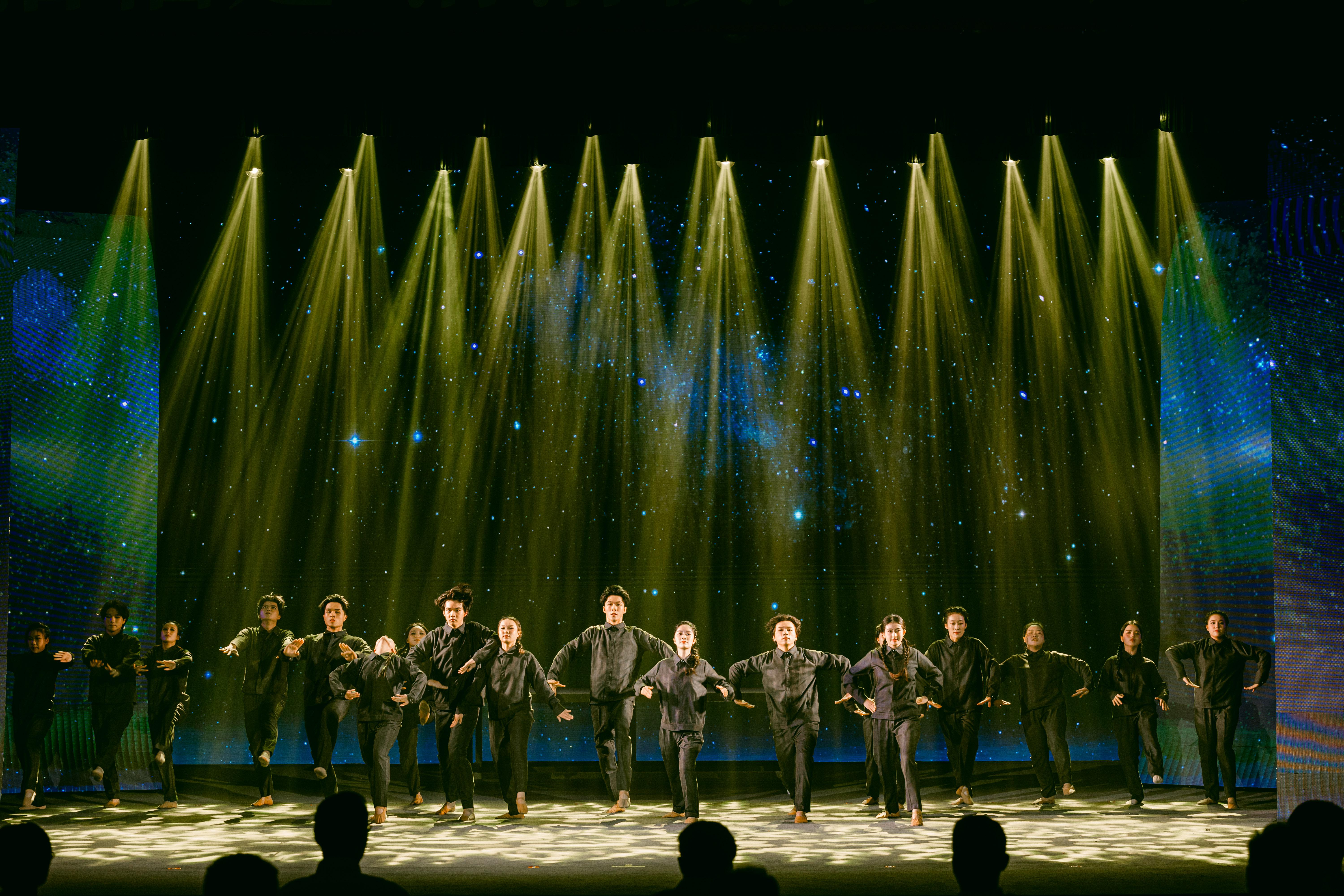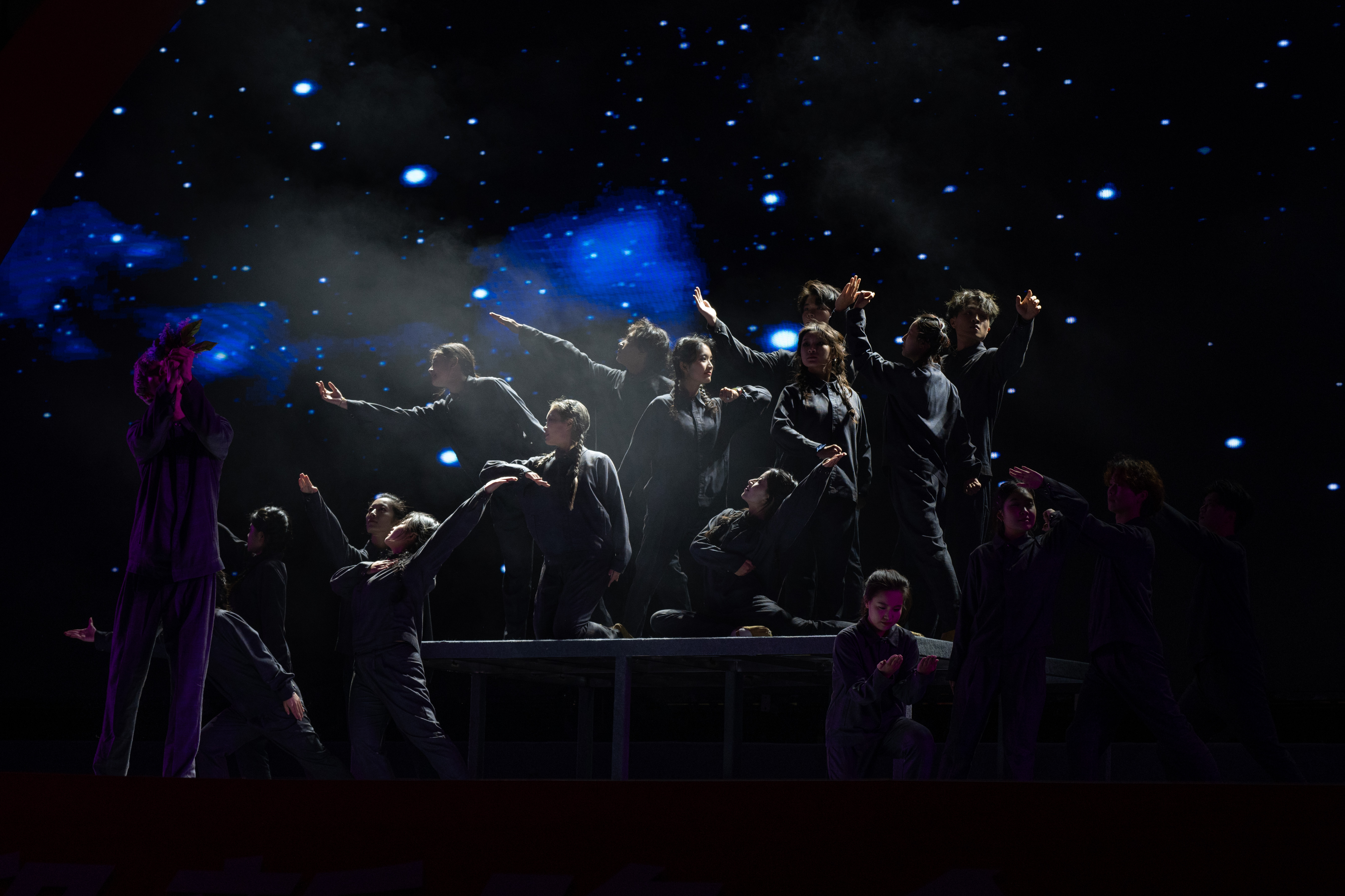 为呈现一场精彩演出,《马兰花魂》团队师生对背景画面和灯光编排进行精心设计,在舞台视觉方面下足了功夫。演出启幕时,背景画面是璀璨星空,带领着观众回溯时间,仿佛亲眼见证科研工作者们的攻关情景;原子弹发射成功那一瞬,蘑菇云腾空而起;最后,画面回到戈壁滩沙漠,遍地马兰花开,展现奋斗精神在祖国大地上的传播。而灯光设计方面,从“昏暗”到“聚焦”再到“暖色”的灯光变化,分别对应着日夜坚守、攻坚克难和成果诞生的奋斗历程,色彩服务于舞台演绎,真正让观众沉浸在故事情节之中。