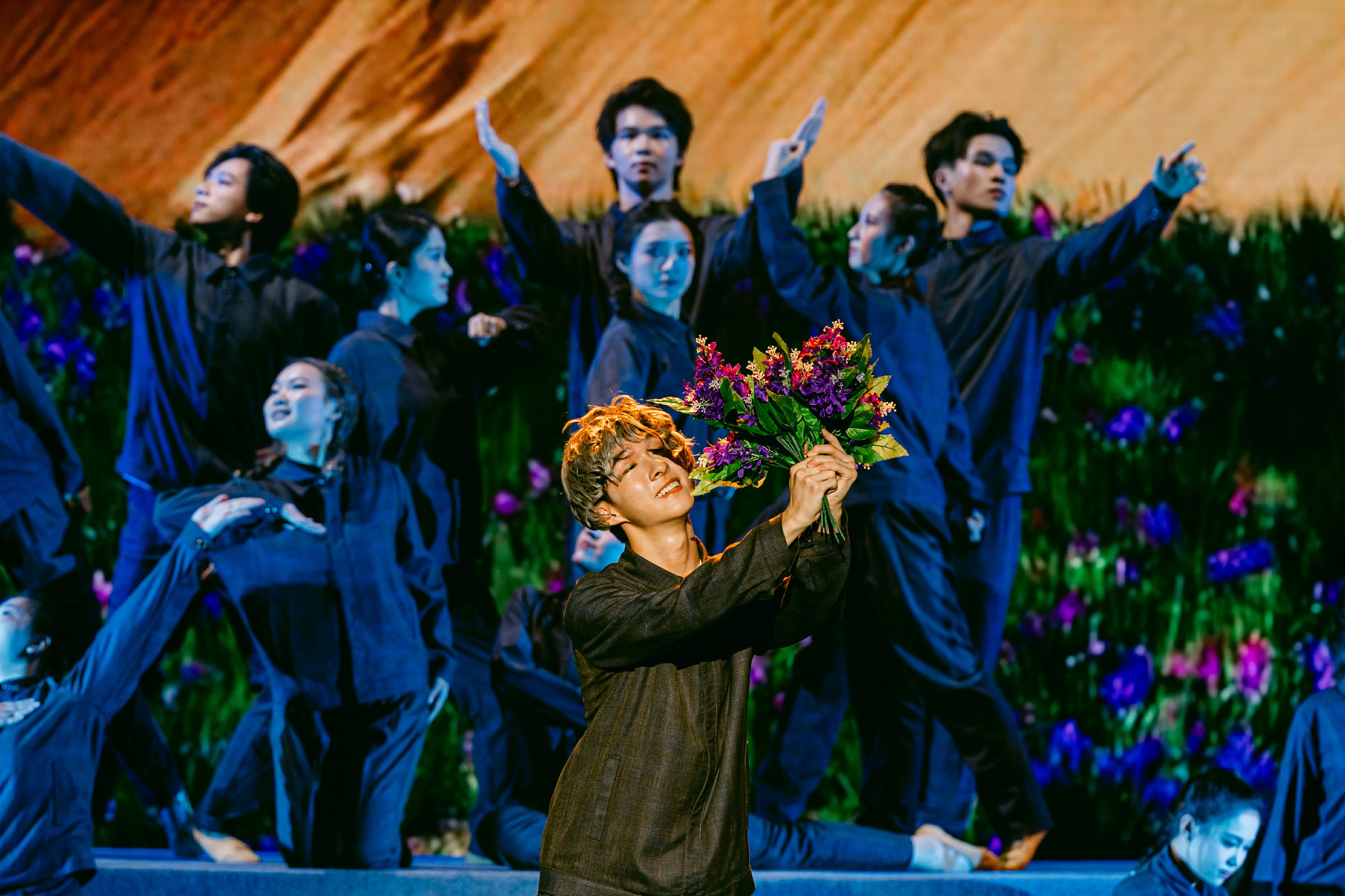 “这个舞蹈我觉得不仅有主角,还有每一位演员。在最后一个场景,老年的邓稼先从人群中显现出来,手中拿着代表奋斗精神的马兰花。聚光灯照在白发苍苍的邓稼先身上,而背后是无数科研工作者在支持着他。”矢志奋斗、默默奉献的科研工作者们,扎根逆境、无惧风沙,正如那荒漠之上的马兰花,坚韧地开放。