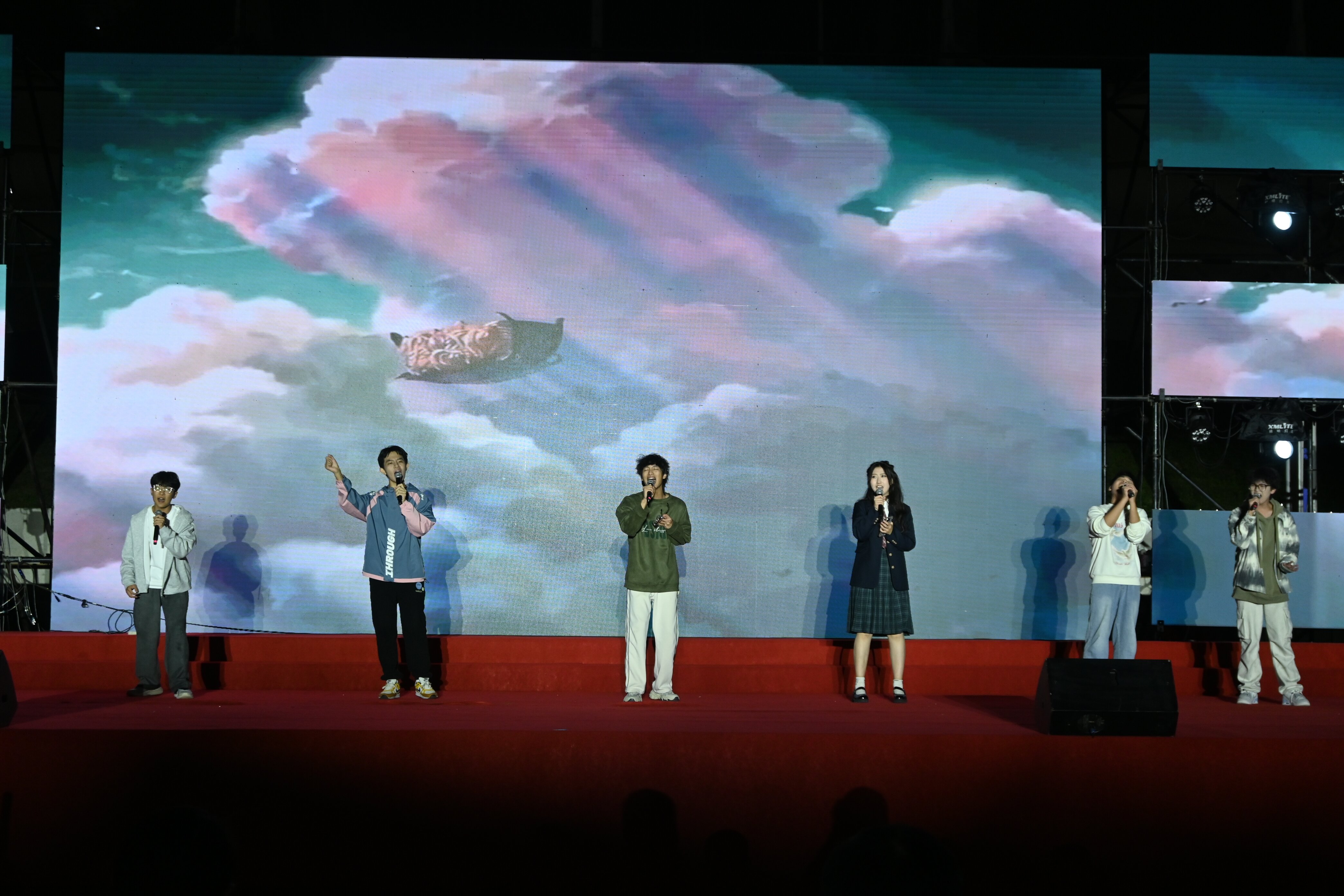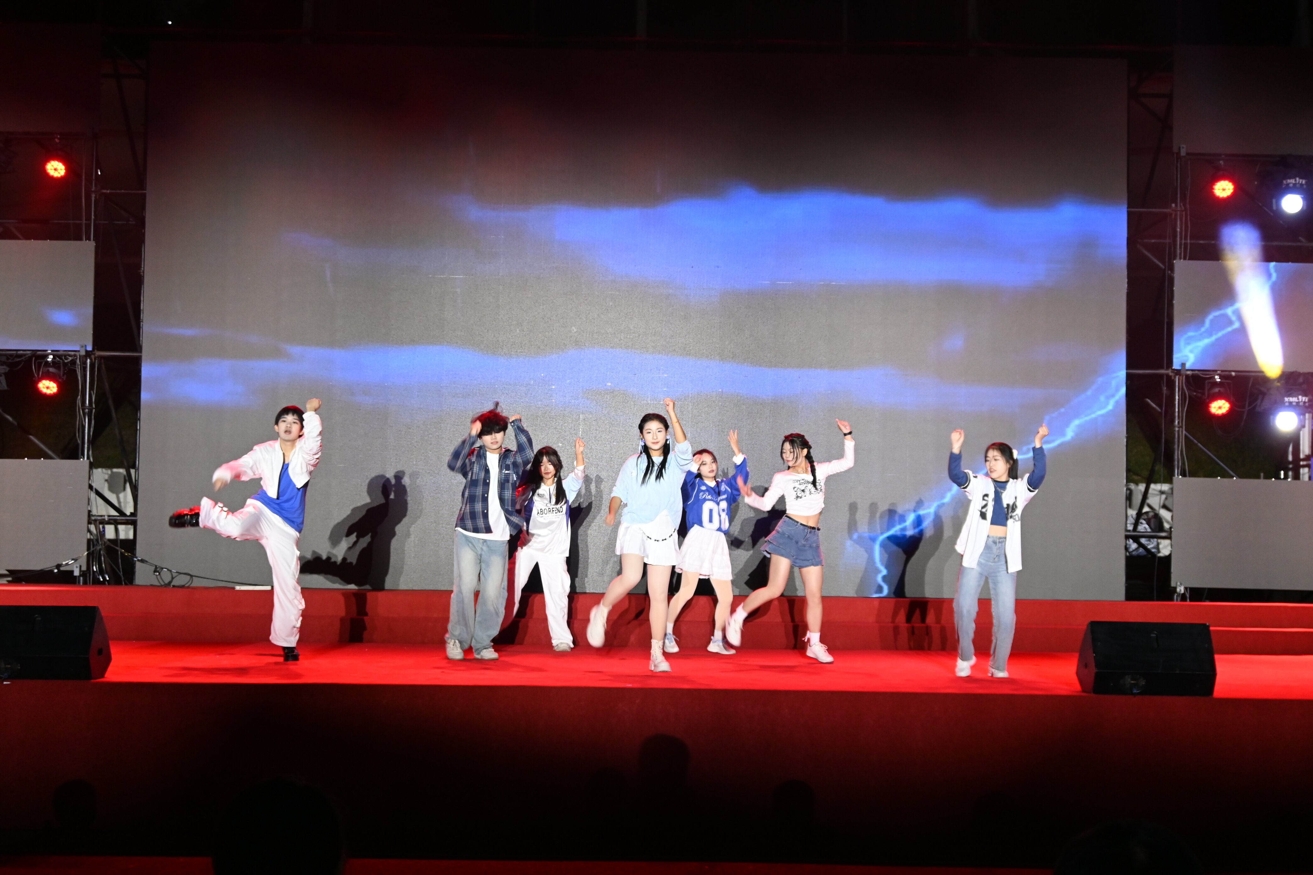 歌曲串烧《我们在爱的鲜花丛中意外相拥》将演出推向新高潮,观众们跟随旋律挥舞荧光棒,凝结成一片银蓝色的汪洋。走秀表演《me too》闪亮登场,将肢体动作与服装展示相结合,凸显大学生的昂扬自信与青春活力。