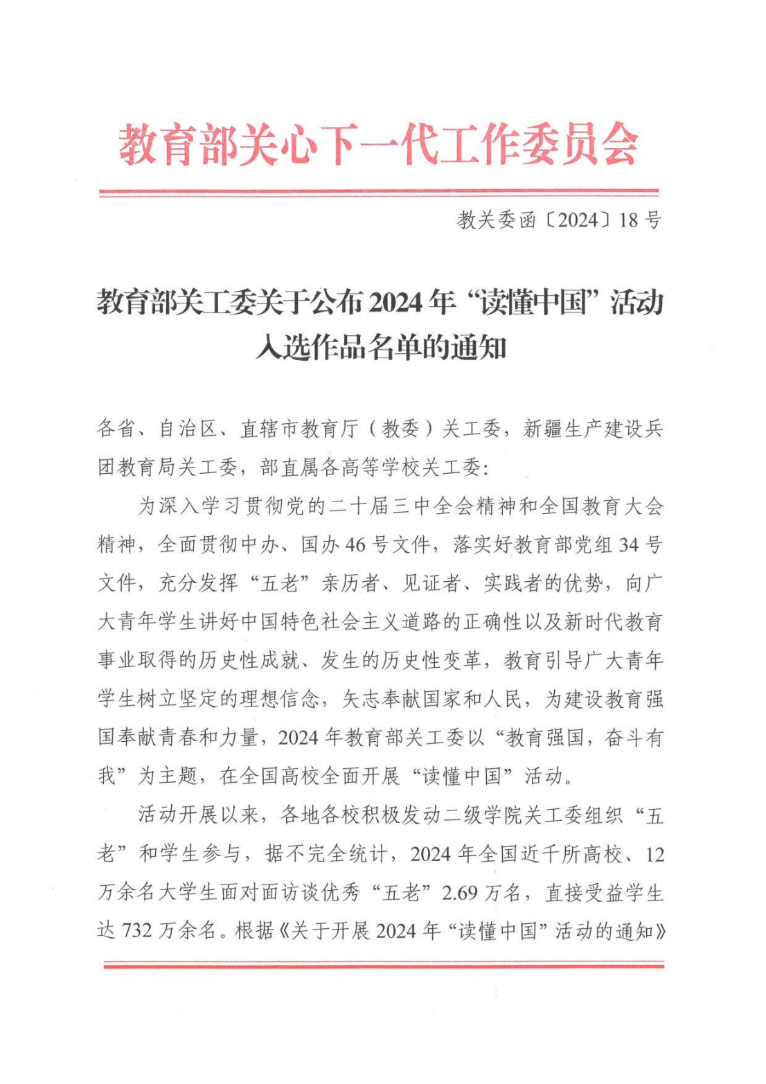日前,教育部关工委公布2024年“读懂中国”活动入选作品名单,草莓视频