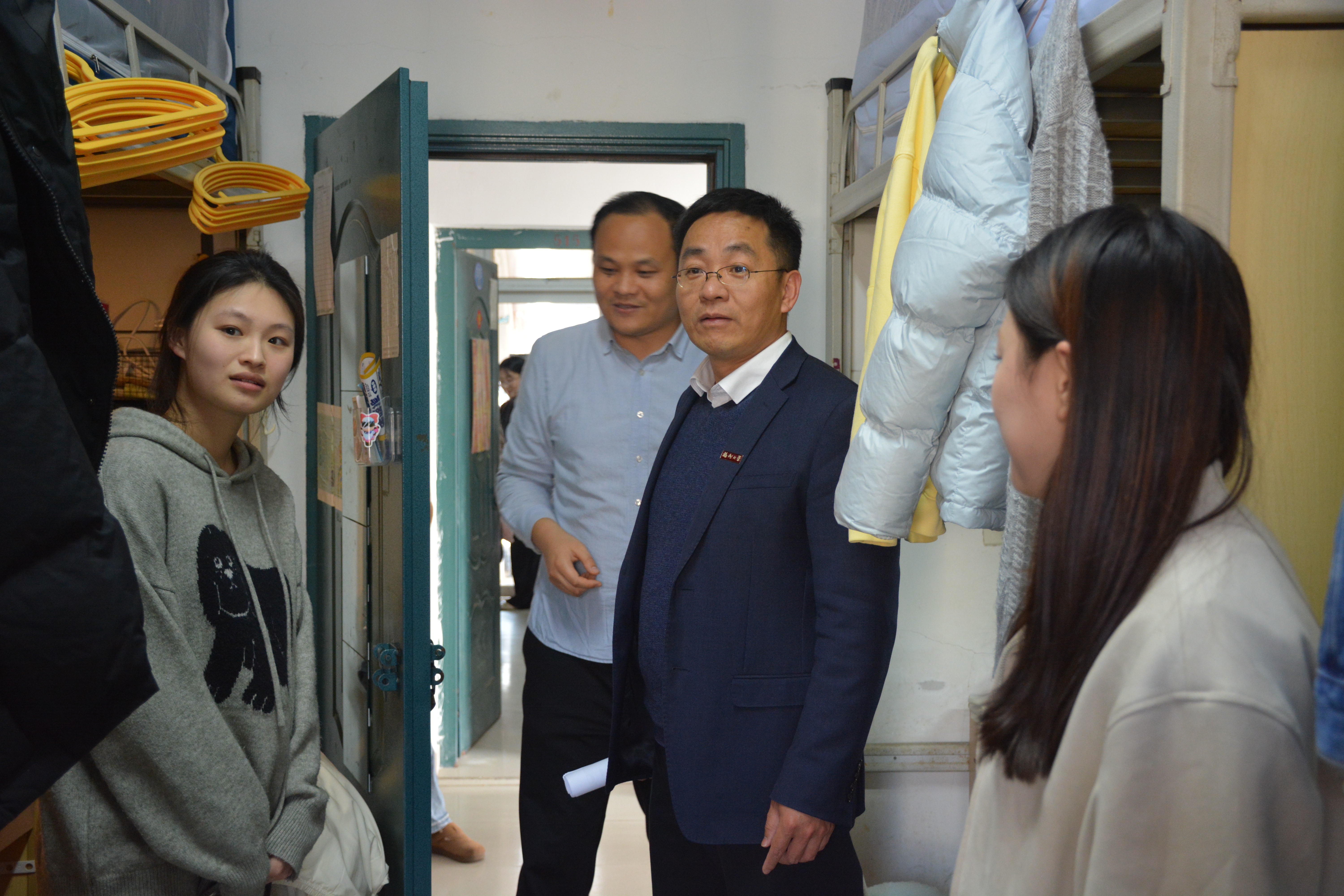 党委副书记赵燕松、团委书记齐朝阳、辅导员黄薇、丁雅莉、谢婉婷深入学生宿舍,开展学期初卫生安全大检查。