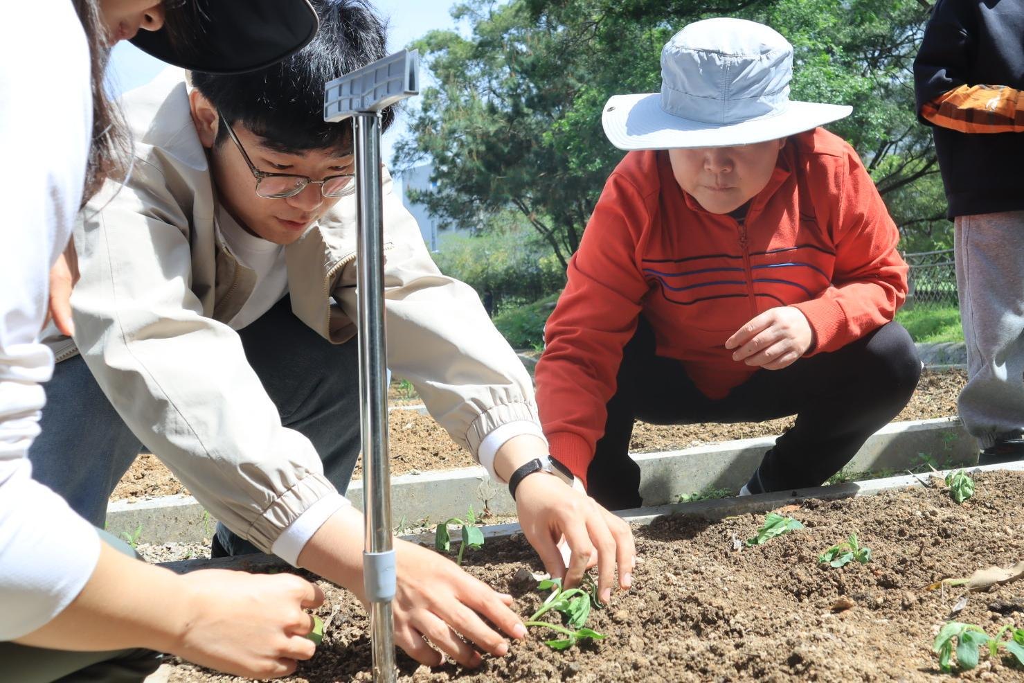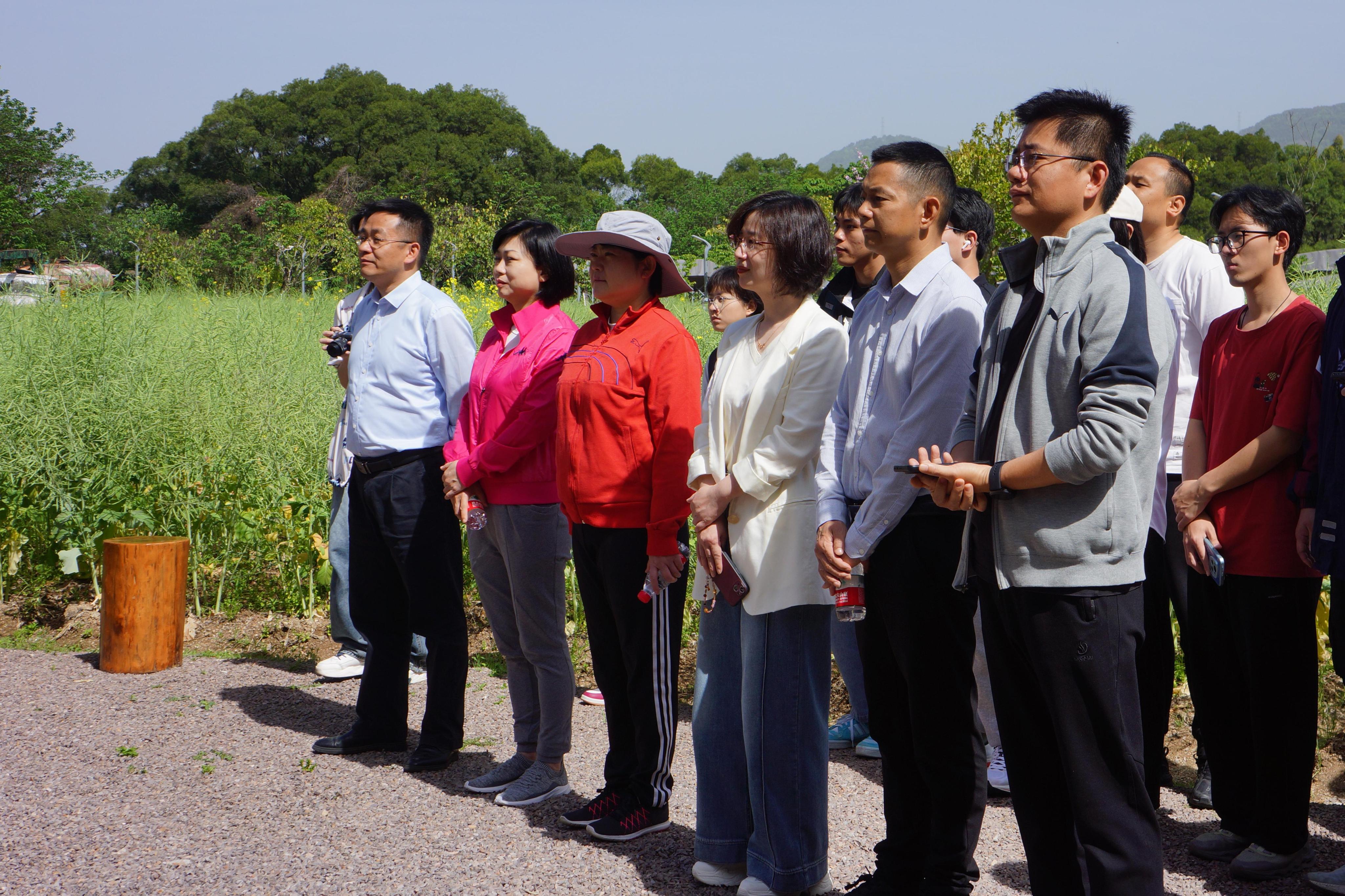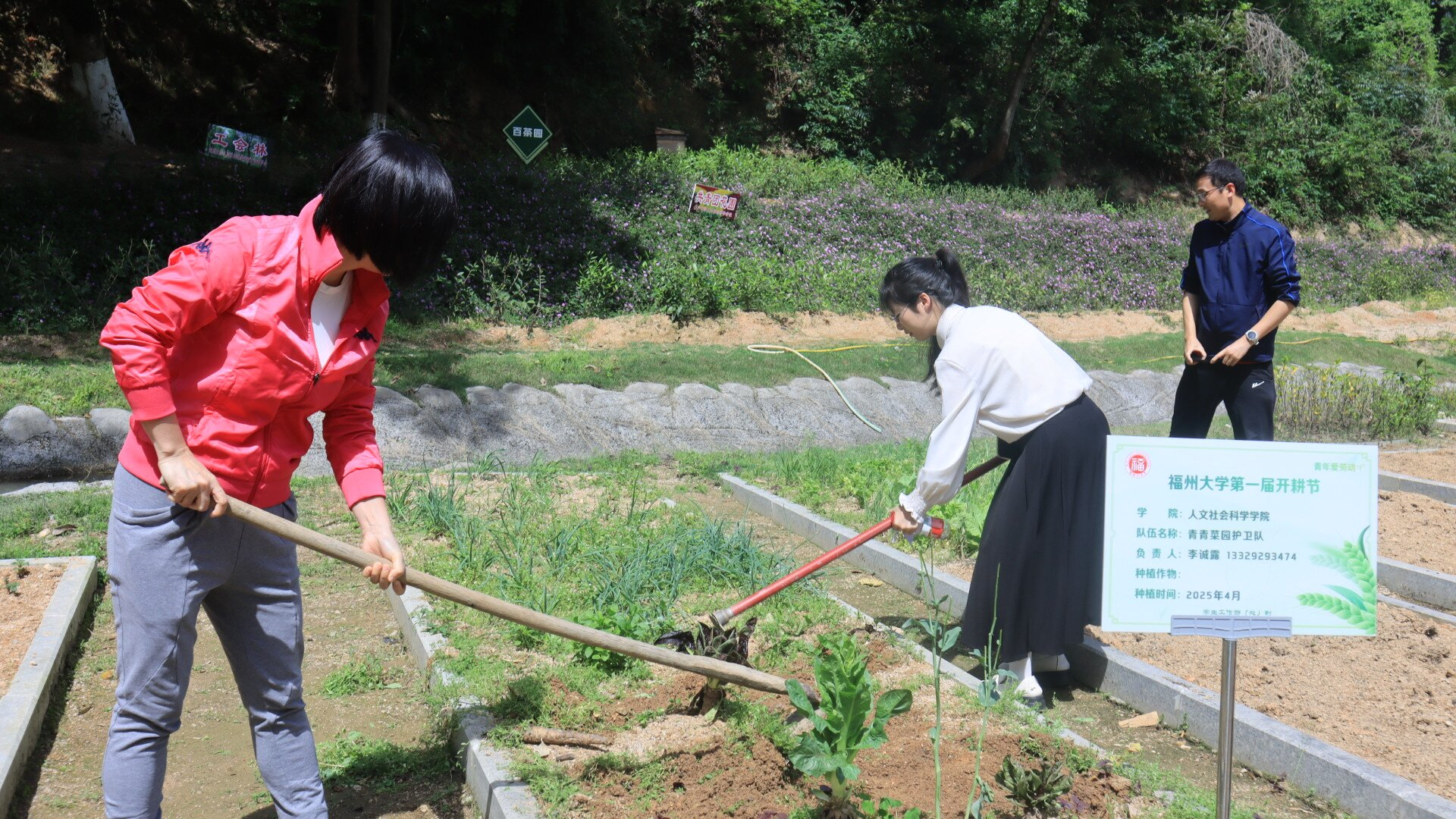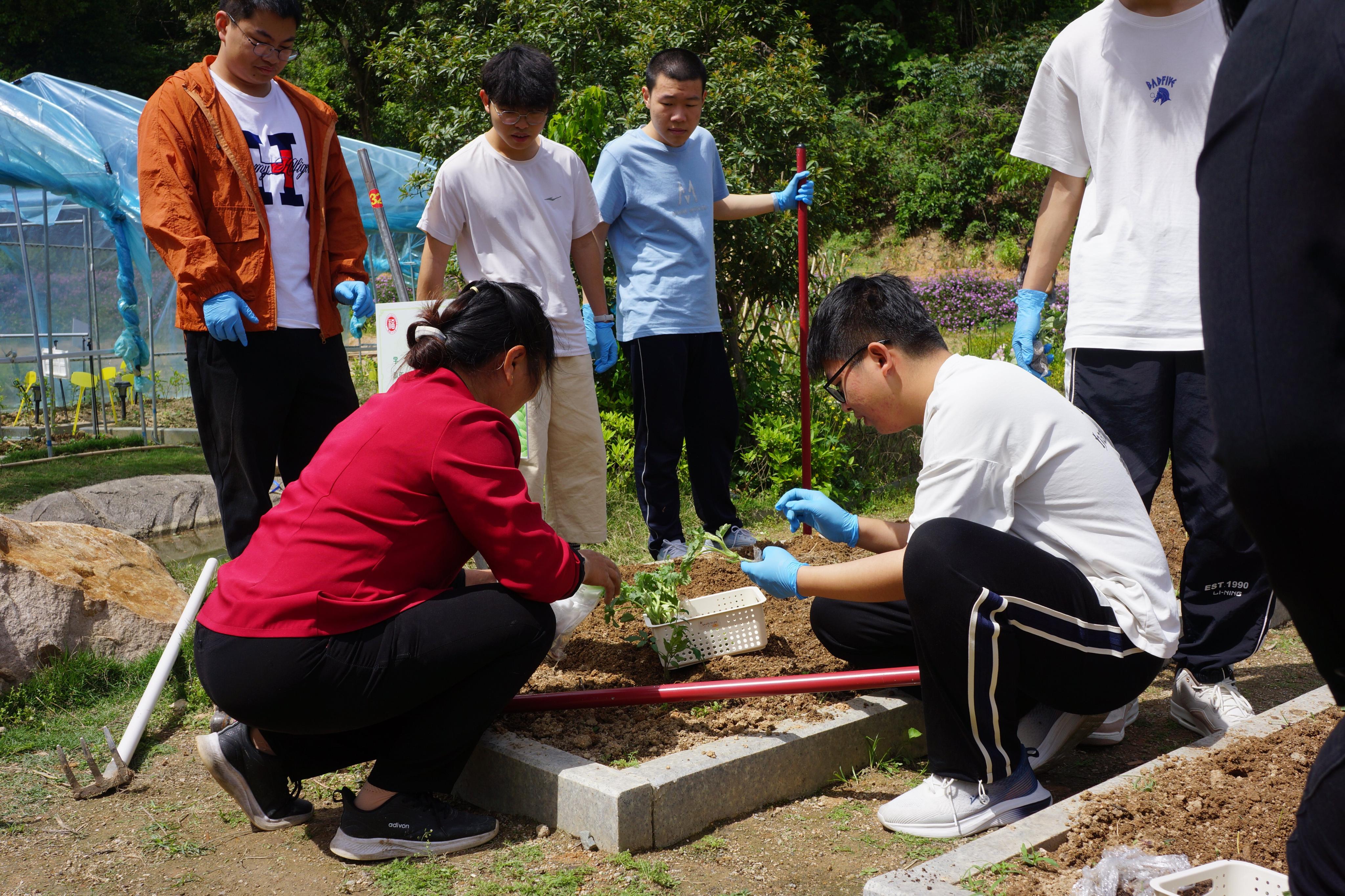仪式落幕,实践启程。师生们撸起袖子,扬起锄头,坚实的泥土随着来回的锄动变得松软。大家三五成群,蹲在田埂边,小心翼翼地将种子均匀播撒,把幼苗轻轻地栽进松软的土坑;工作人员则穿梭在人群里,耐心答疑,手把手传授松土、播种、栽苗、施肥、浇水的窍门。劳作声、指导声、欢笑声交织回荡,共同奏响了一曲生机勃勃的春耕乐章。