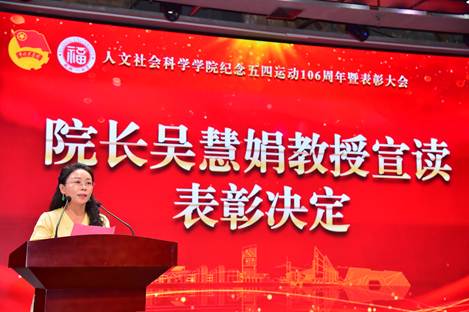 大会在庄严激昂的旋律中拉开序幕。与会人员全体肃立,奏唱国歌。院长吴慧娟教授宣读表彰决定,对获得表彰的集体和个人表示祝贺。